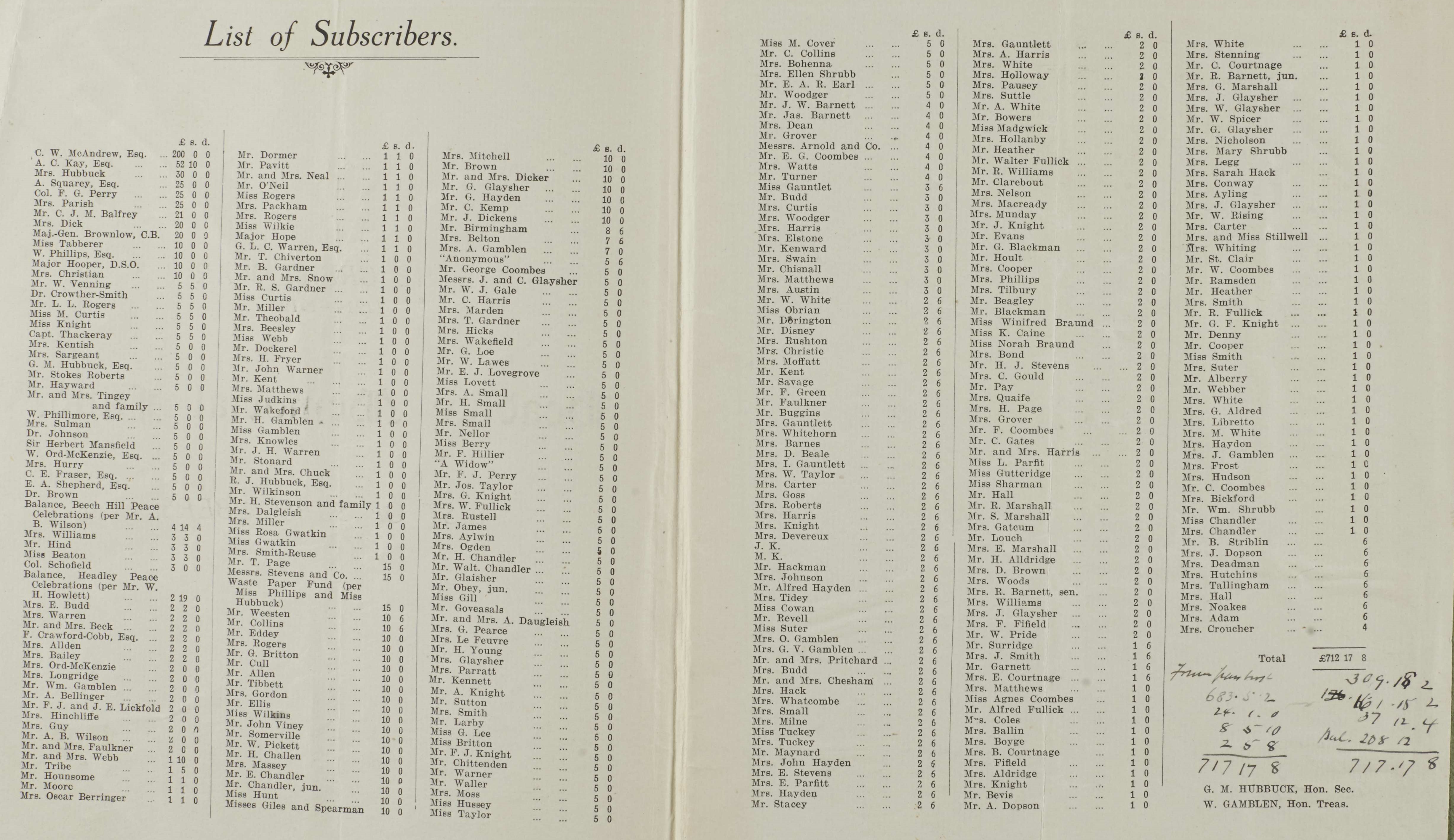See also full list of all those who fought see List of Subscribers to the War Memorial