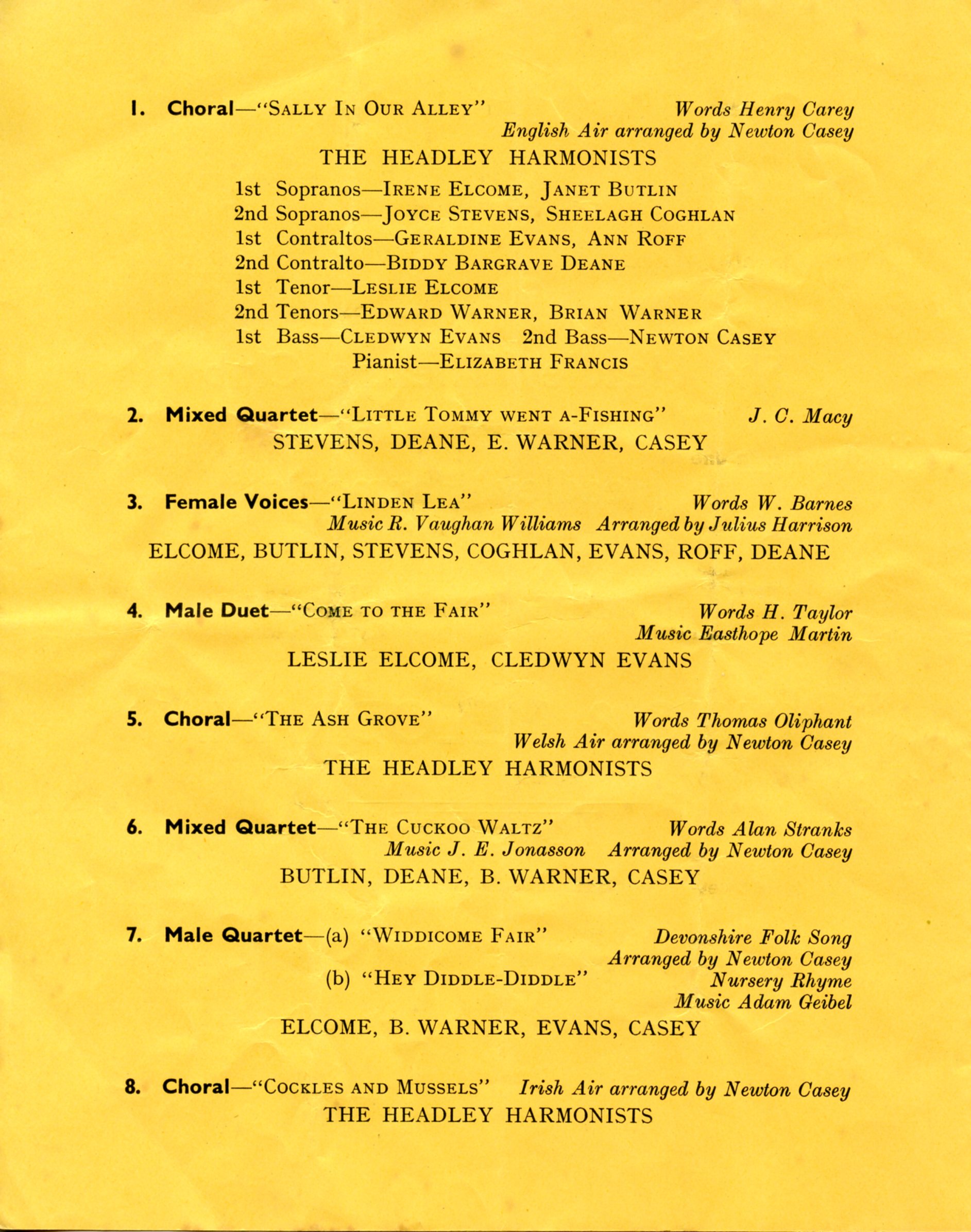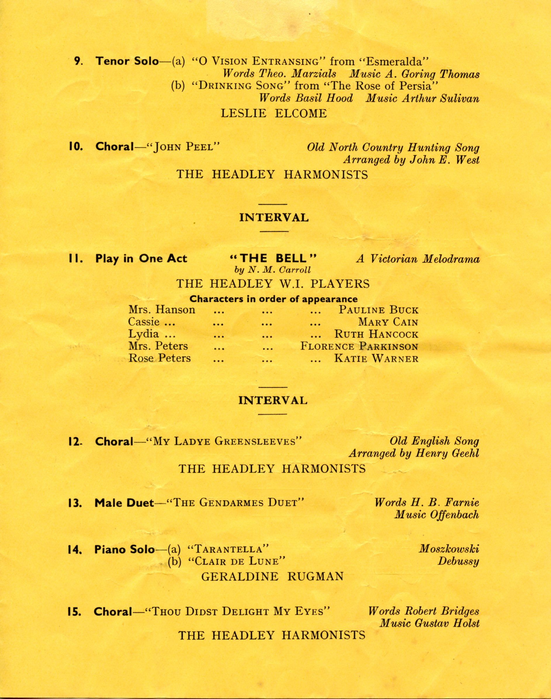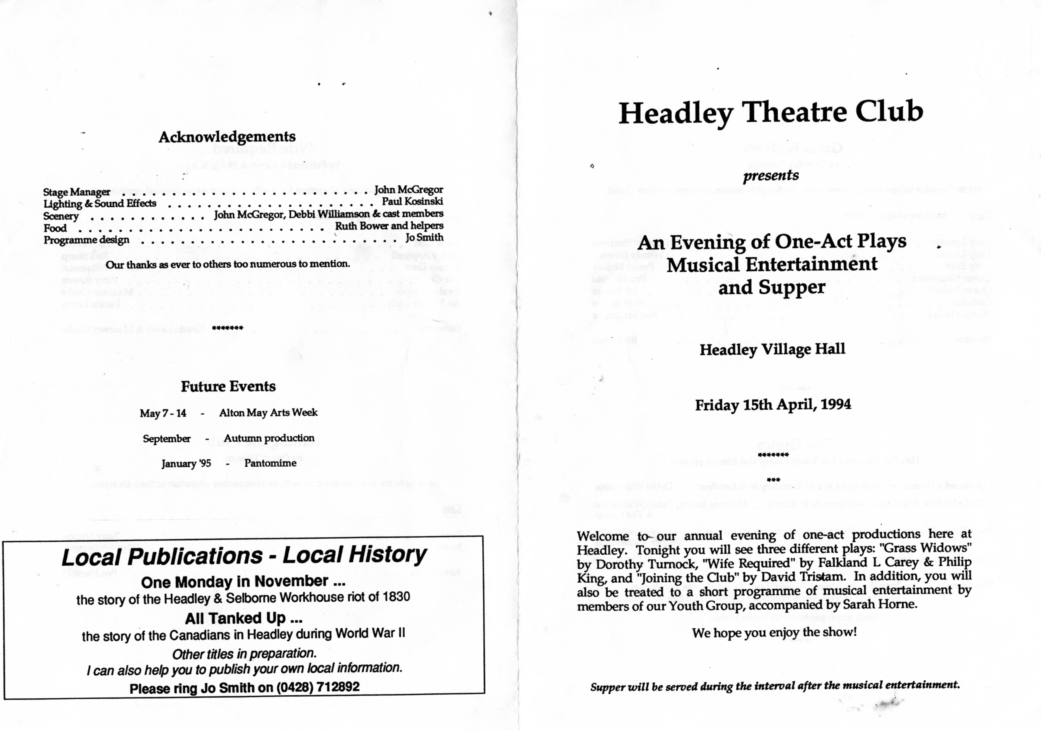 | Dec | "Yuletide in Headley" (dir: Dil Williamson) – programme – photos |
