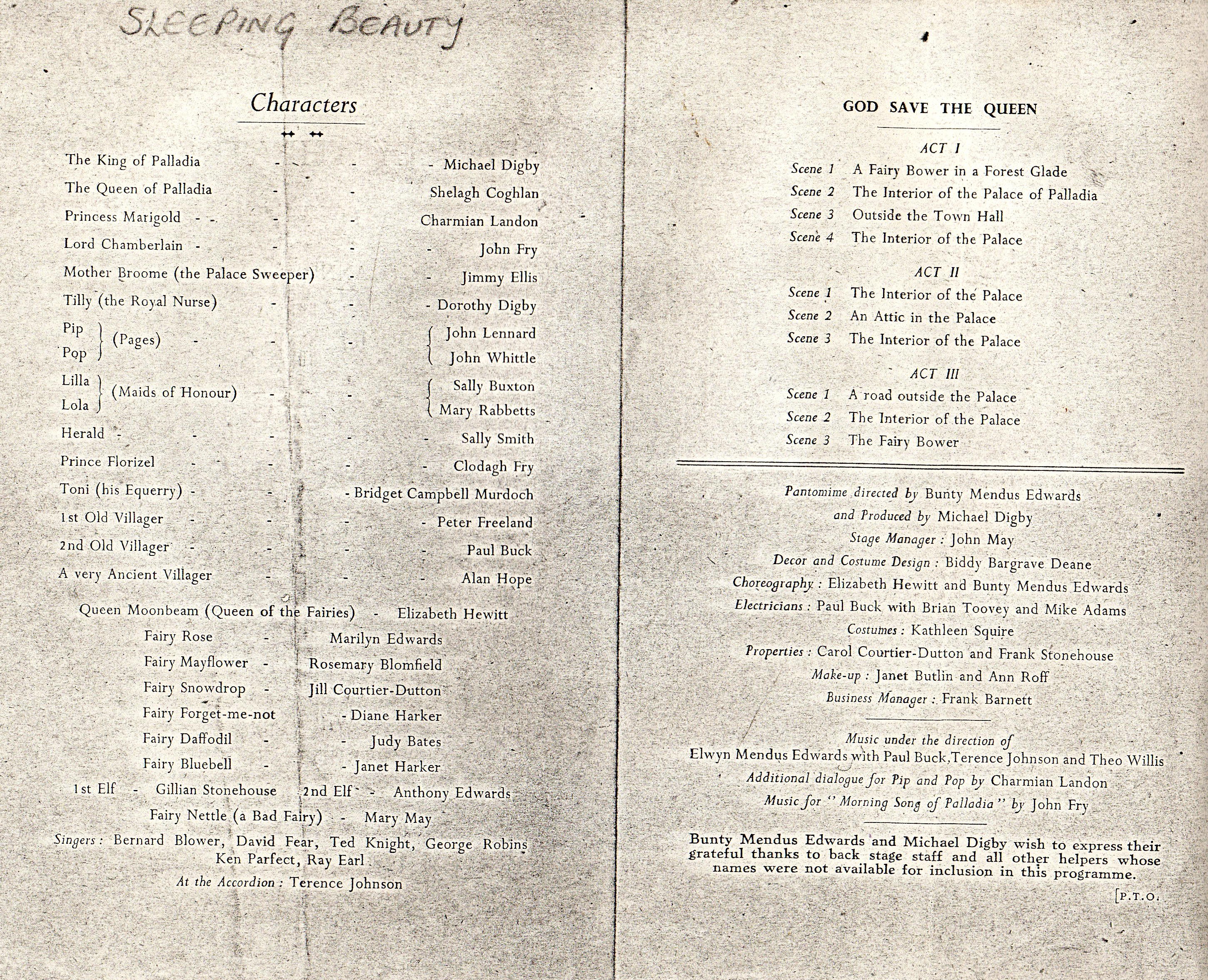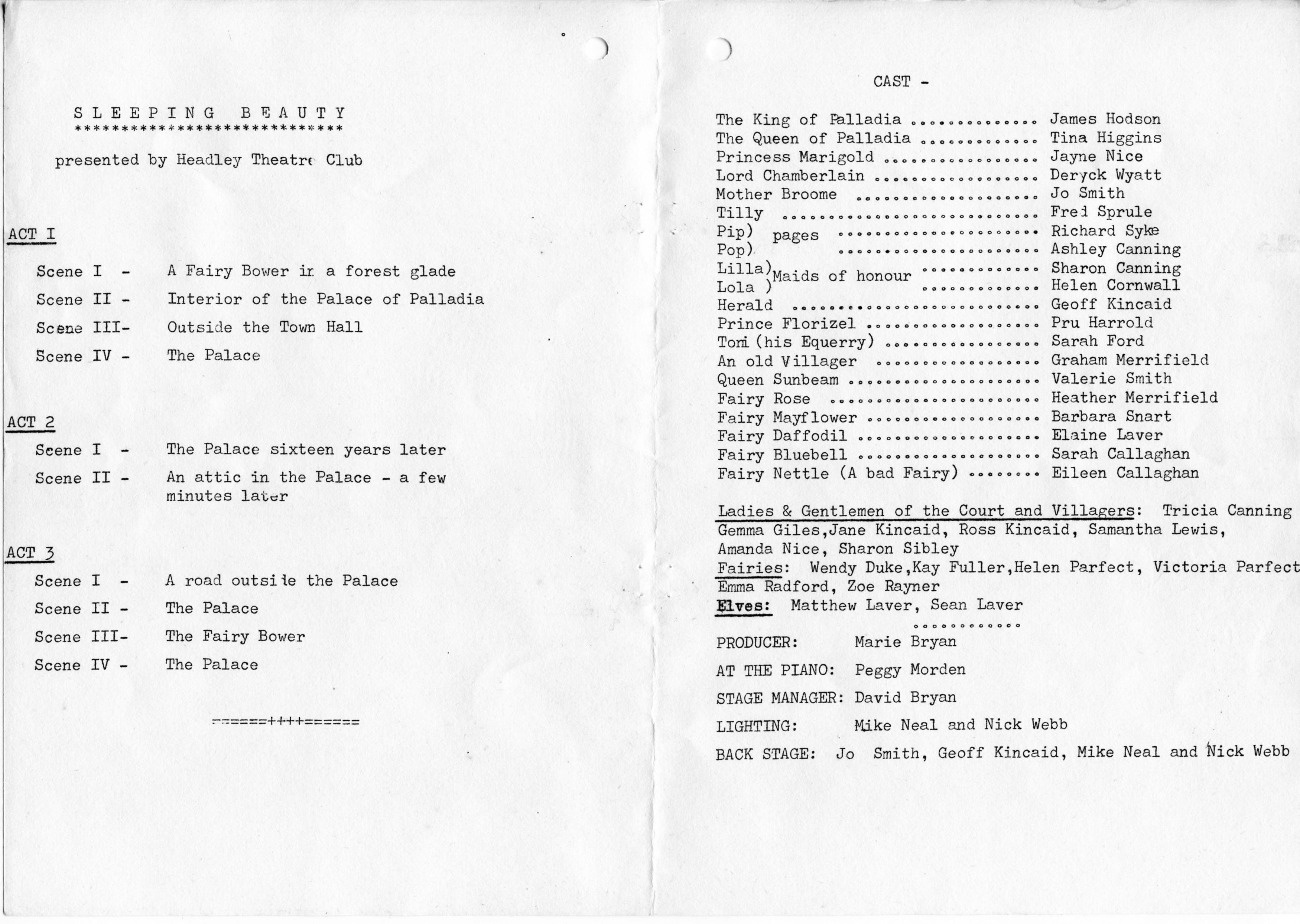 | 1956 | Sleeping Beauty (director: Col. M Digby/Mrs Edwards) - programme |