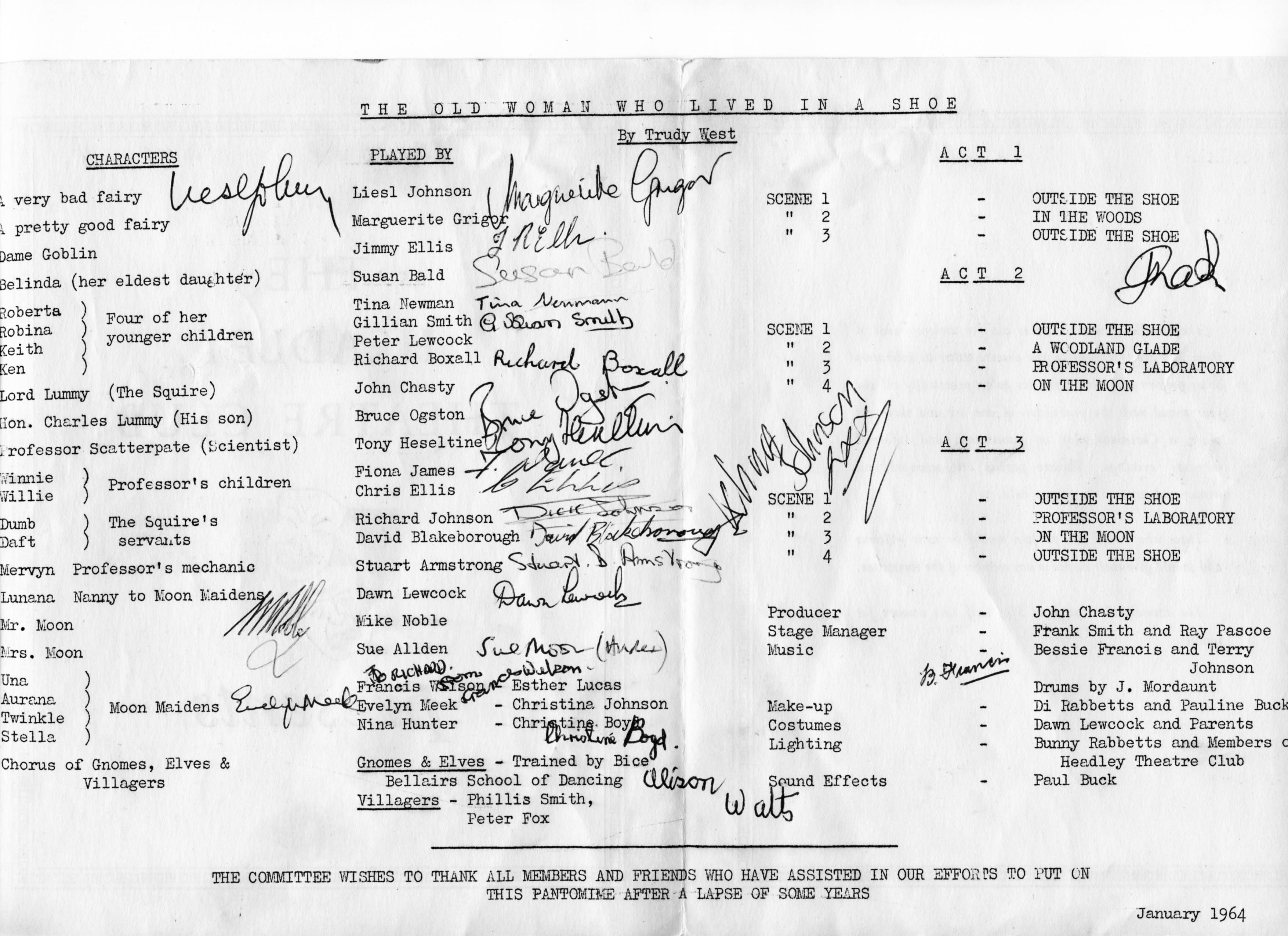 | 1964 | Old Woman Who Lived in a Shoe (director: John Chasty) - photo & report - programme |