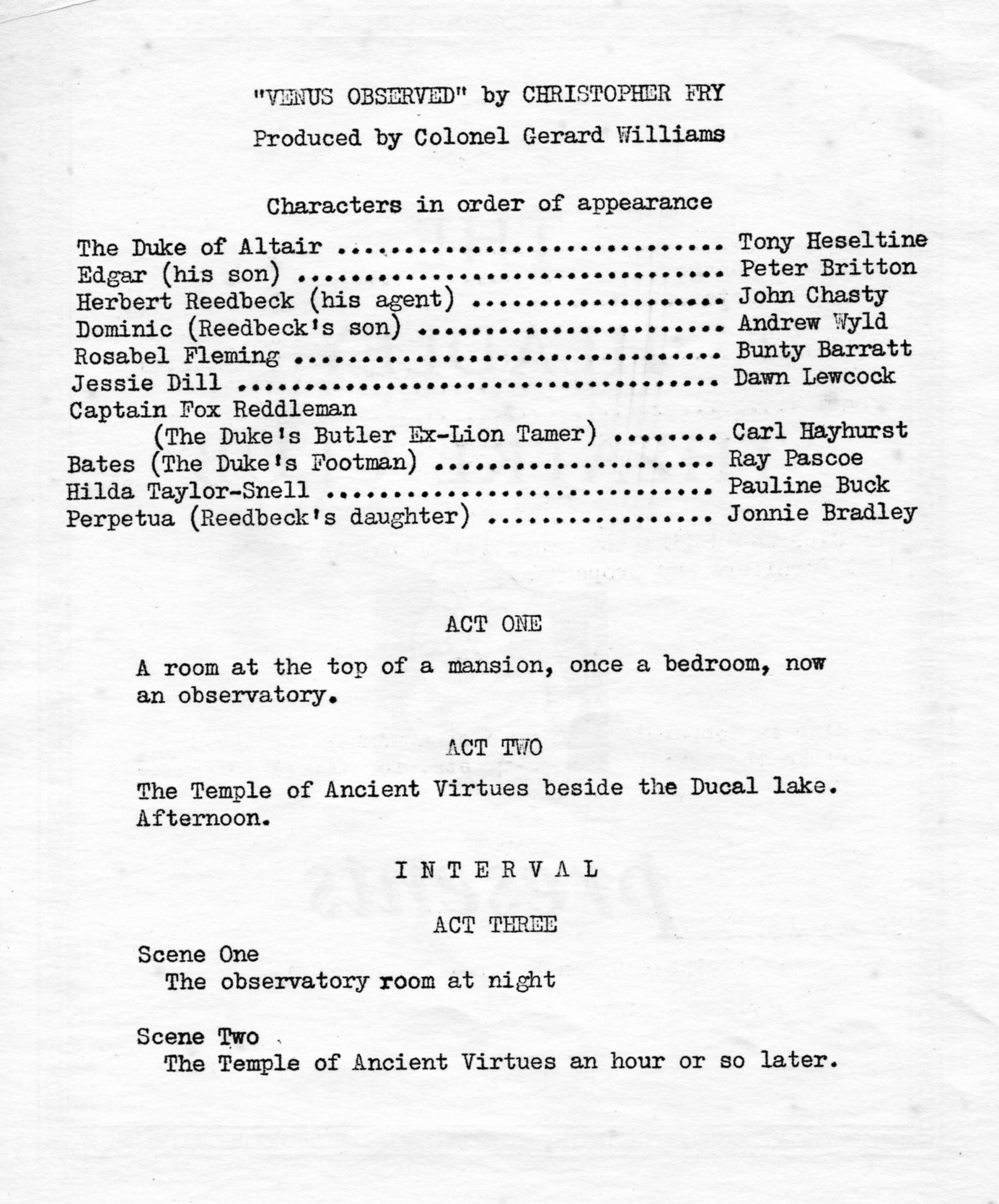 | Autumn | Venus Observed (director: Colonel Williams) - programme page1 - page 2 |