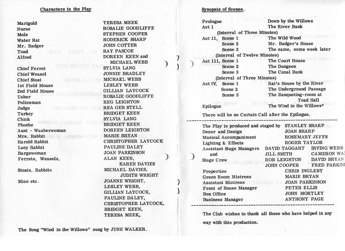 | 1970 | Toad of Toad Hall (director: Stan Sharp) - programme |