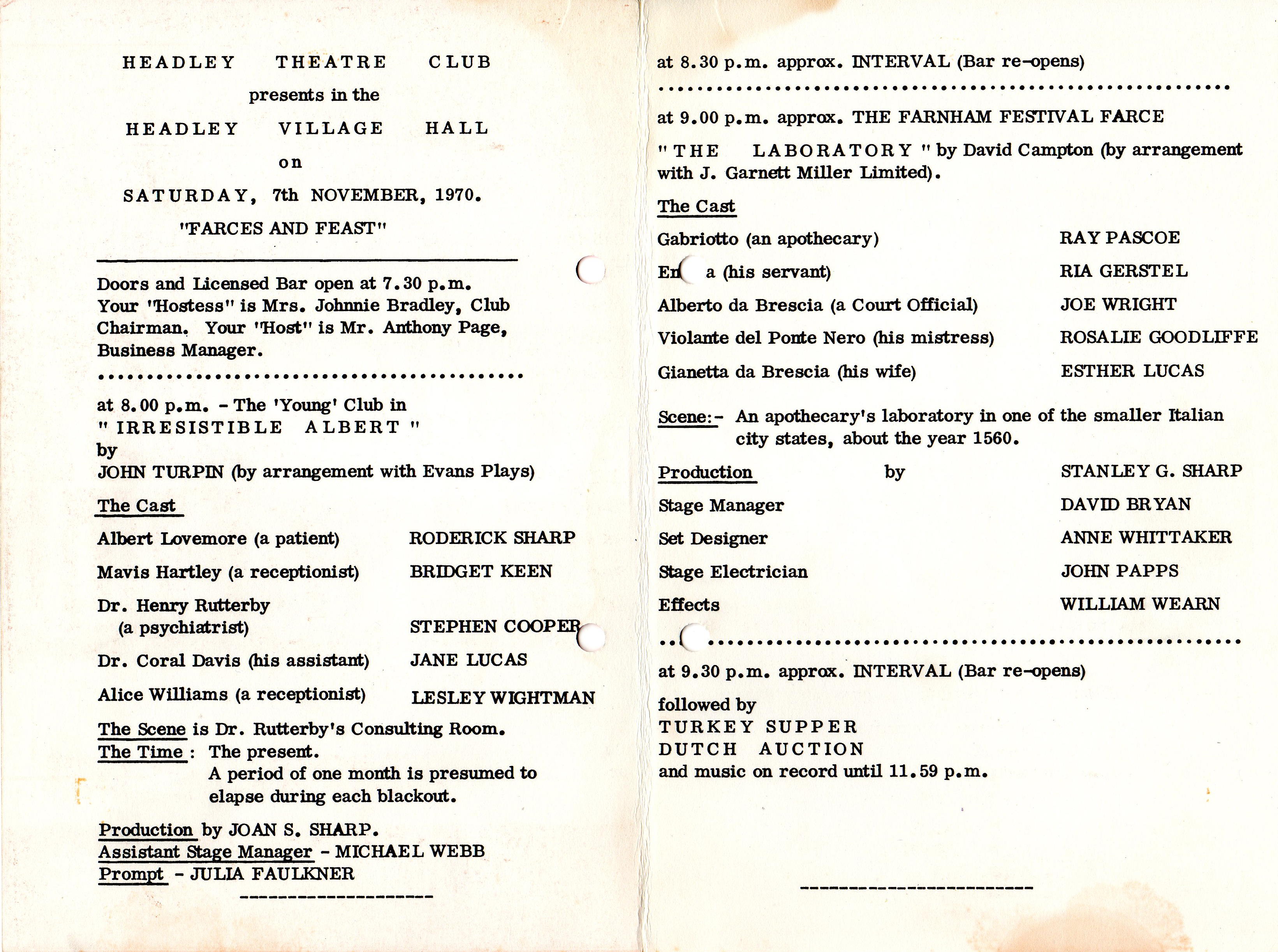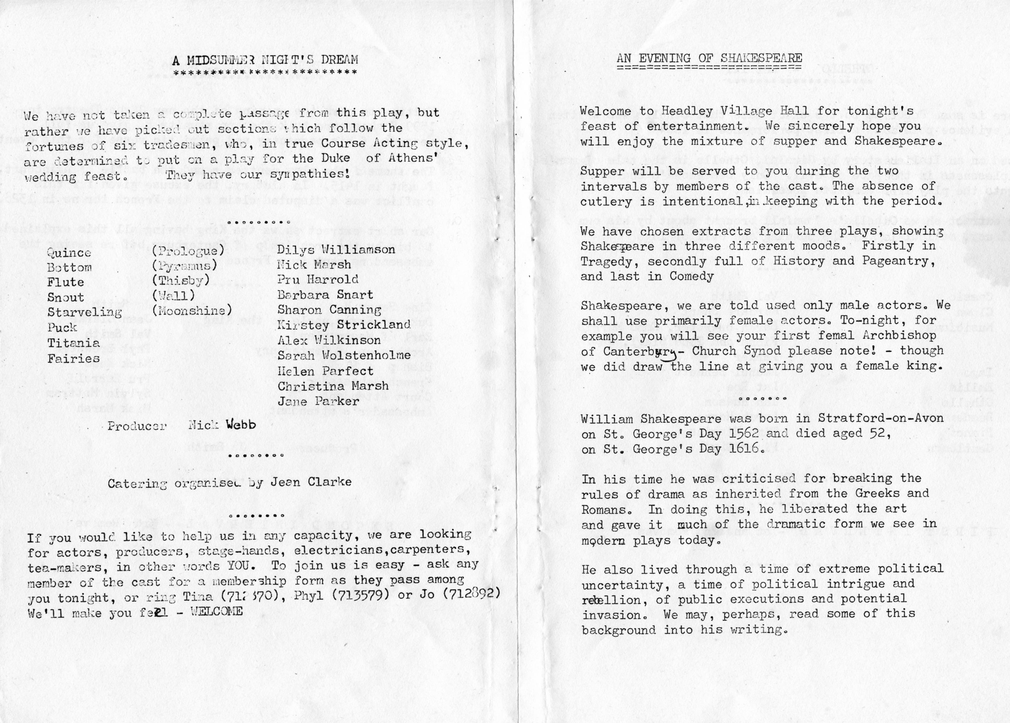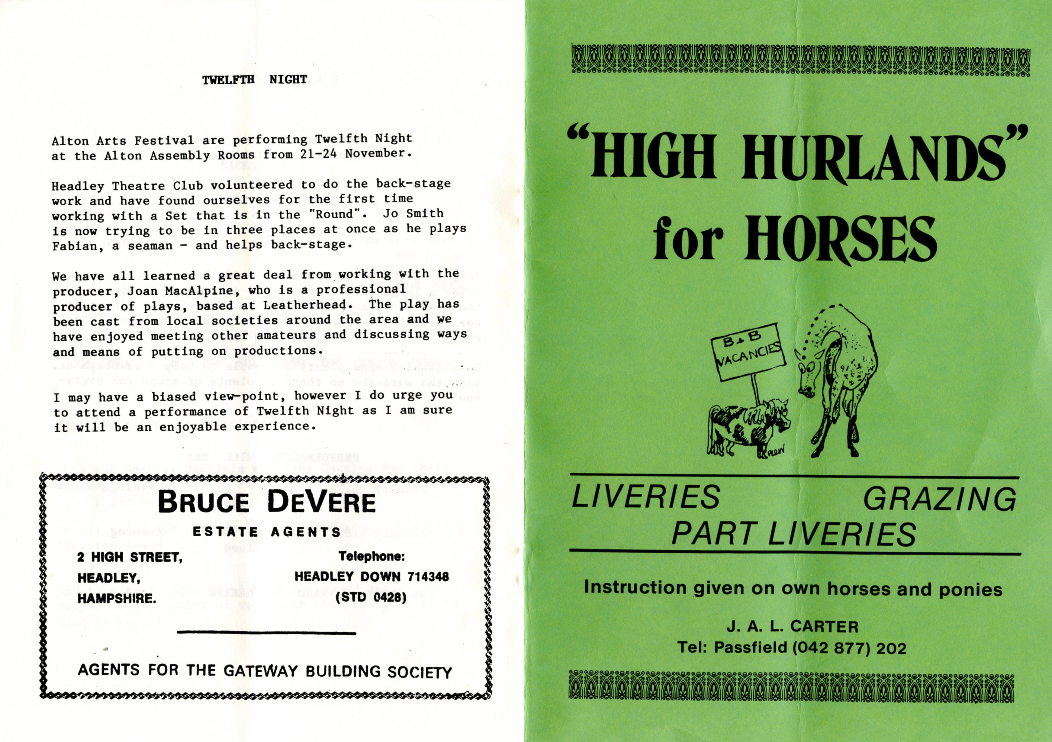 | Nov | Dark Lady of the Sonnets (1-act) (director: John Chasty) [plus 'The Faithful Widow of Ephesus' by Rogate Drama Group] - programme |