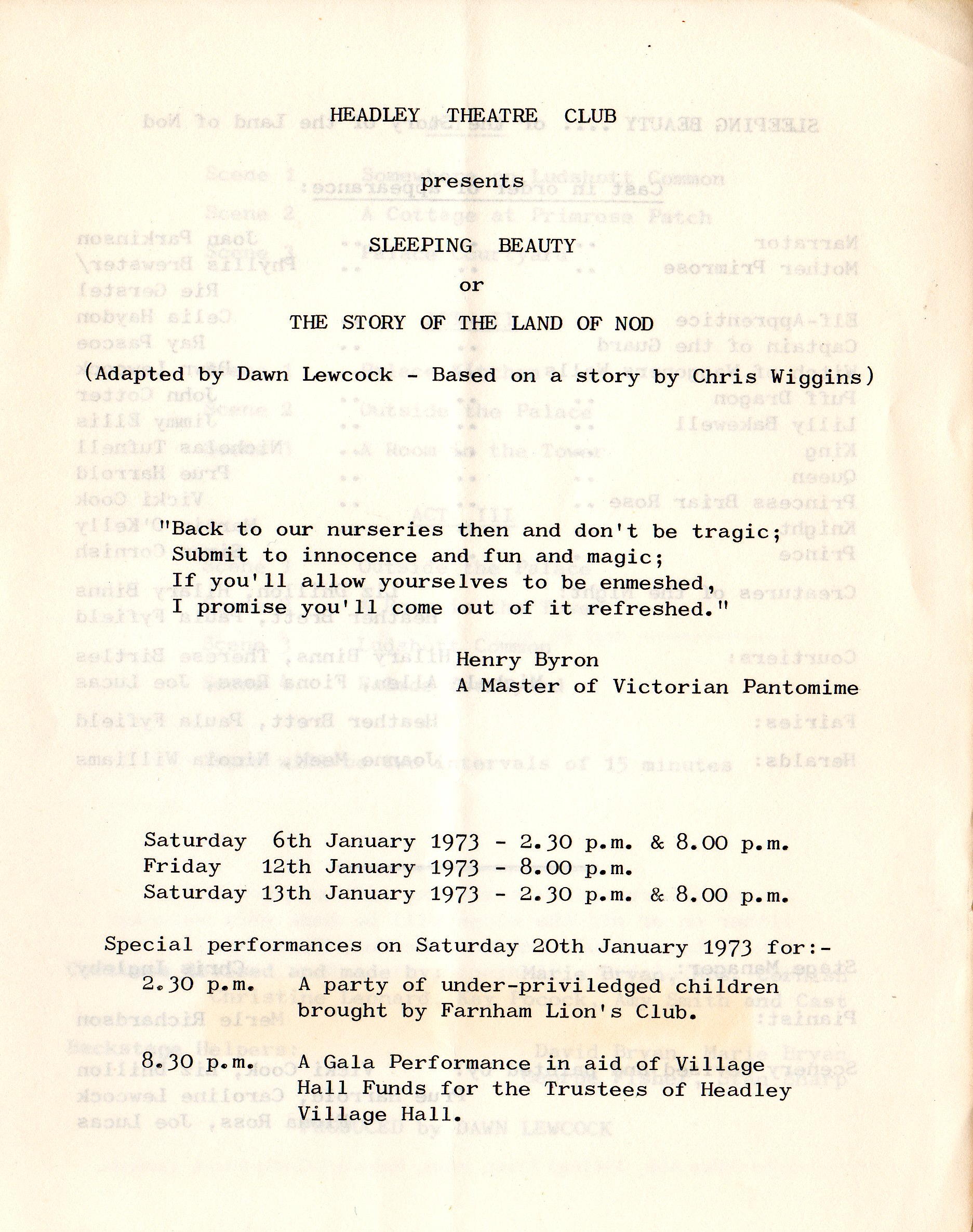 | 1973 | Sleeping Beauty (adaptor & director: Dawn Lewcock) - photo & report - programme: page 1 - page 2 |