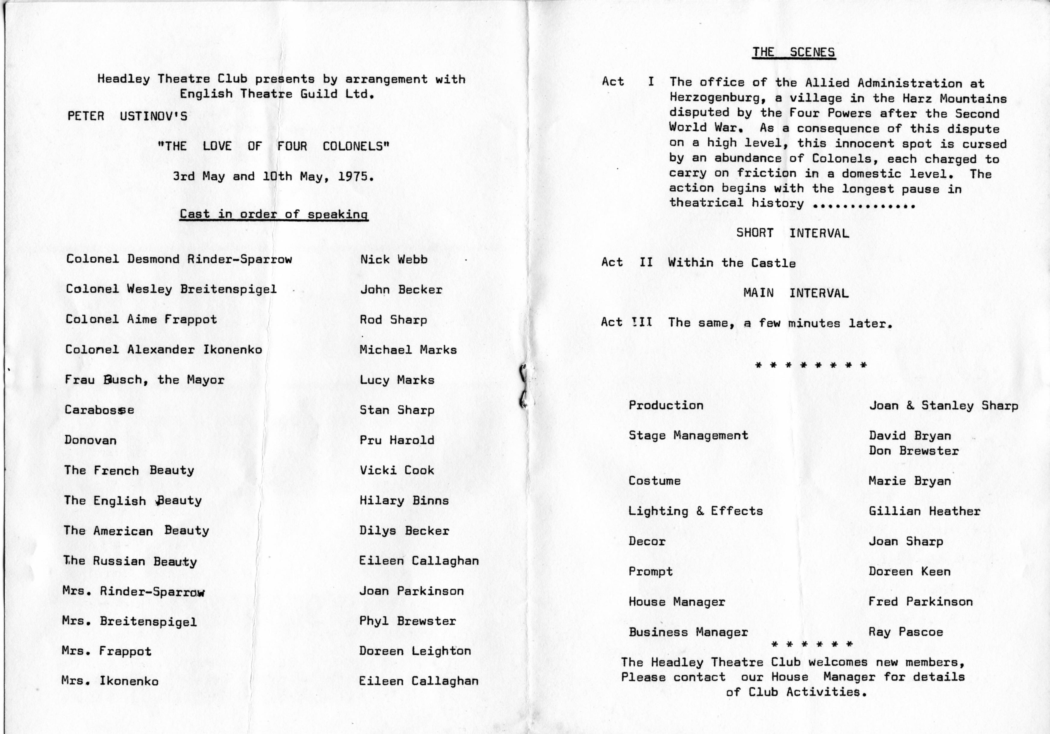 | May | The Love of 4 Colonels (dir: Stan & Joan Sharp) - programme - report & photos |
