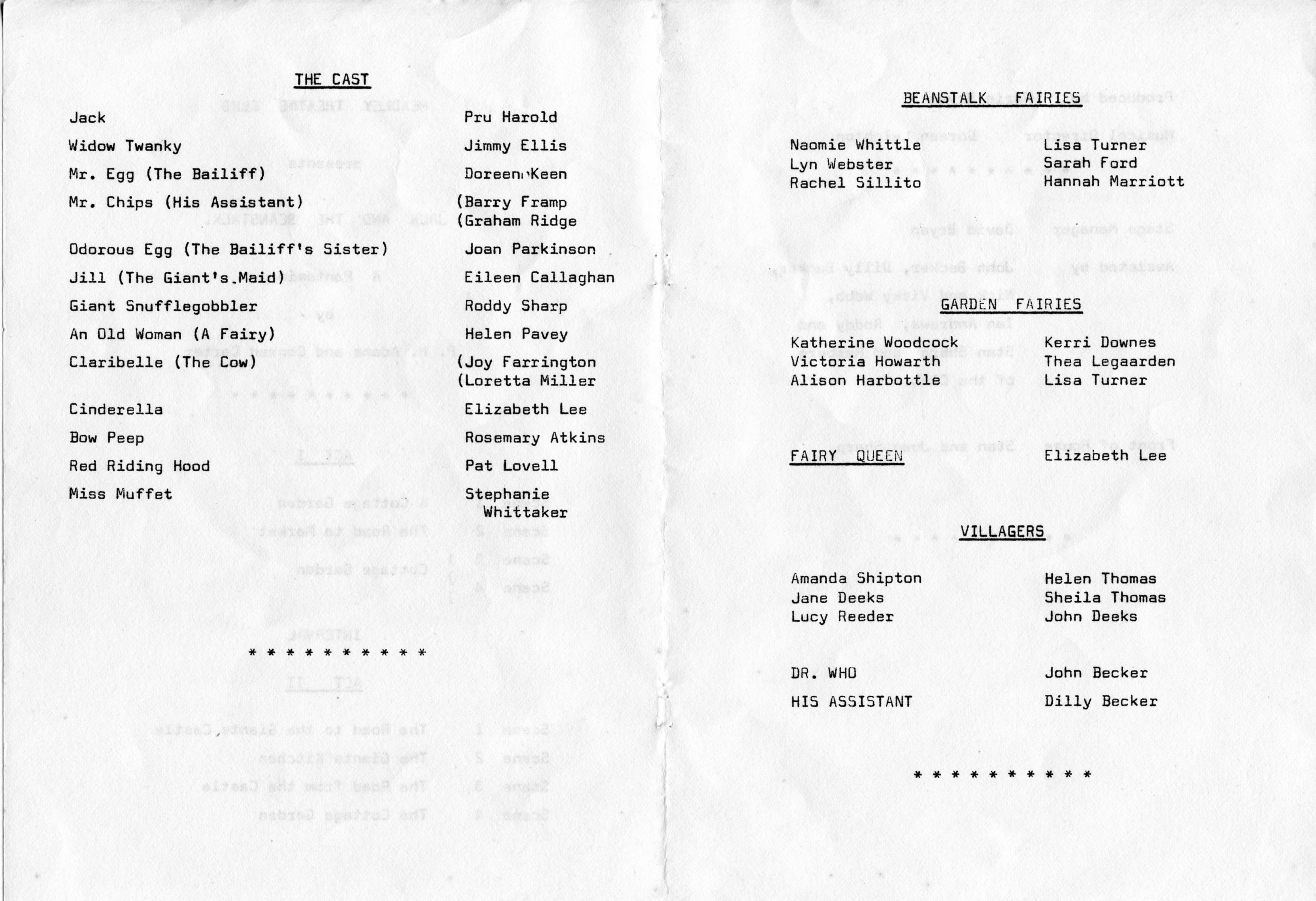 | 1977 | Jack and the Beanstalk (dir: Marie Bryan) – programme inside – outside – photo & report |