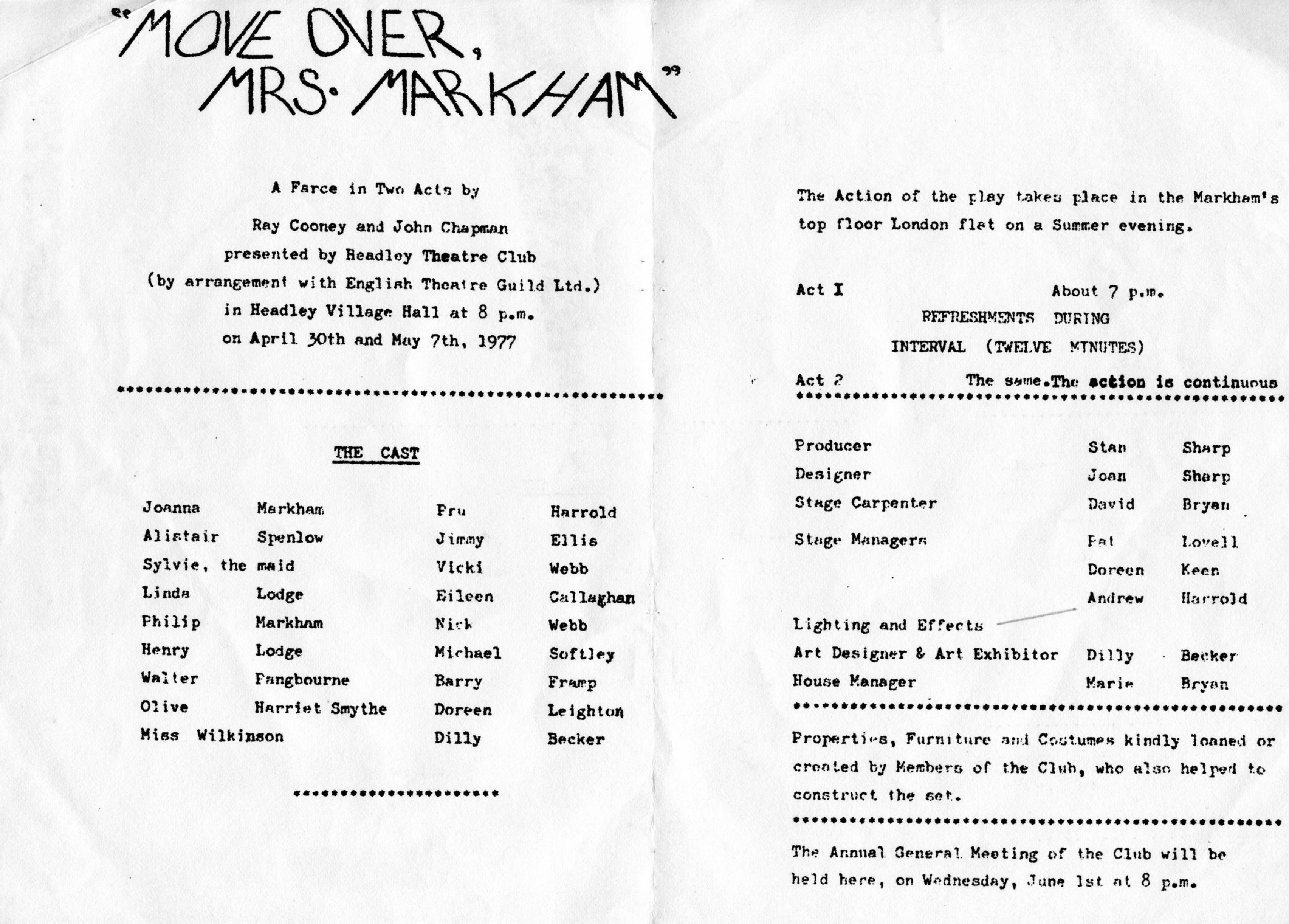 | May | Move Over Mrs Markham (dir: Stan Sharp) – programme – photo & report |