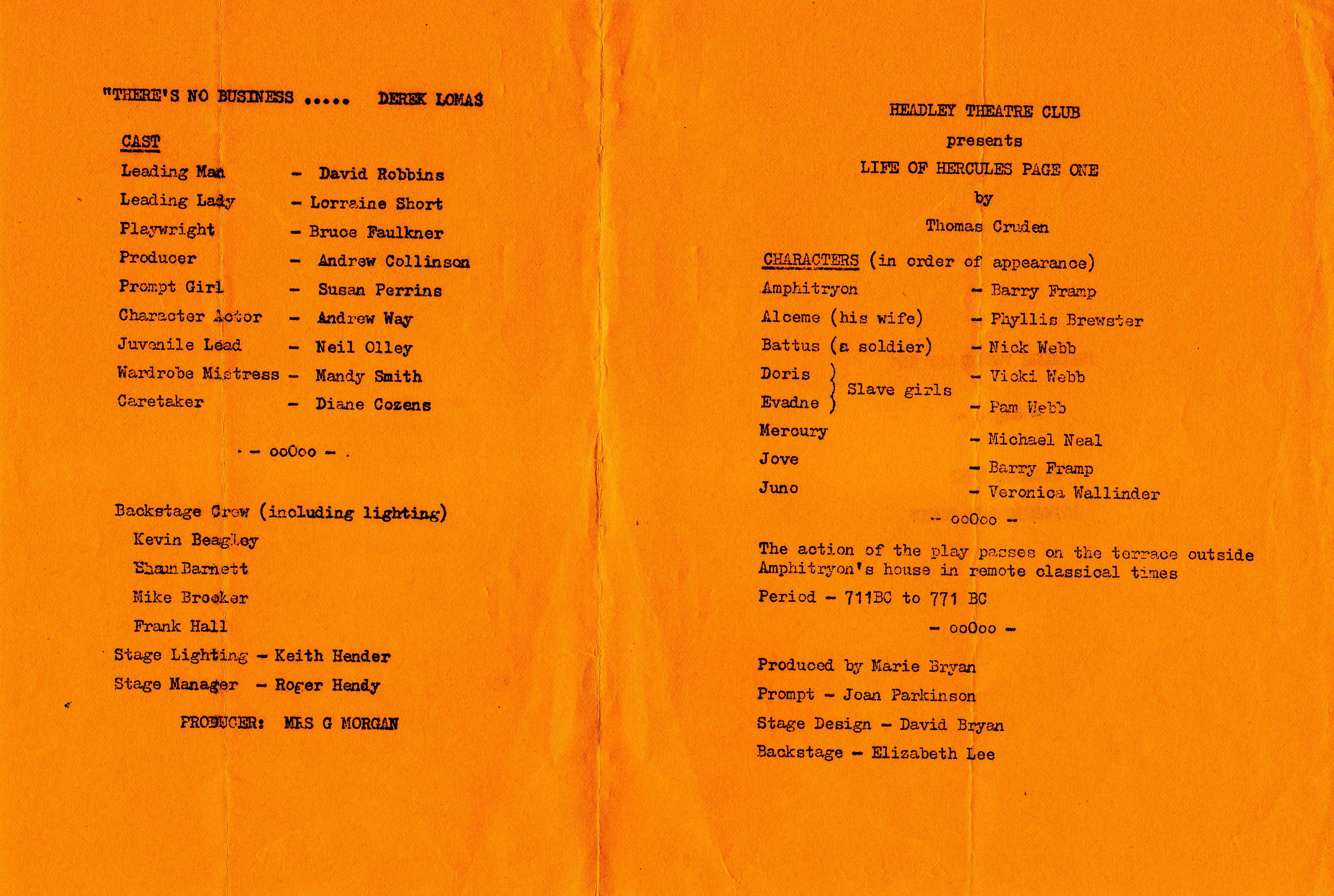 | 1969 | Albert Laddin: mini-panto & Costume Party (director: Dawn Lewcock) - ticket |