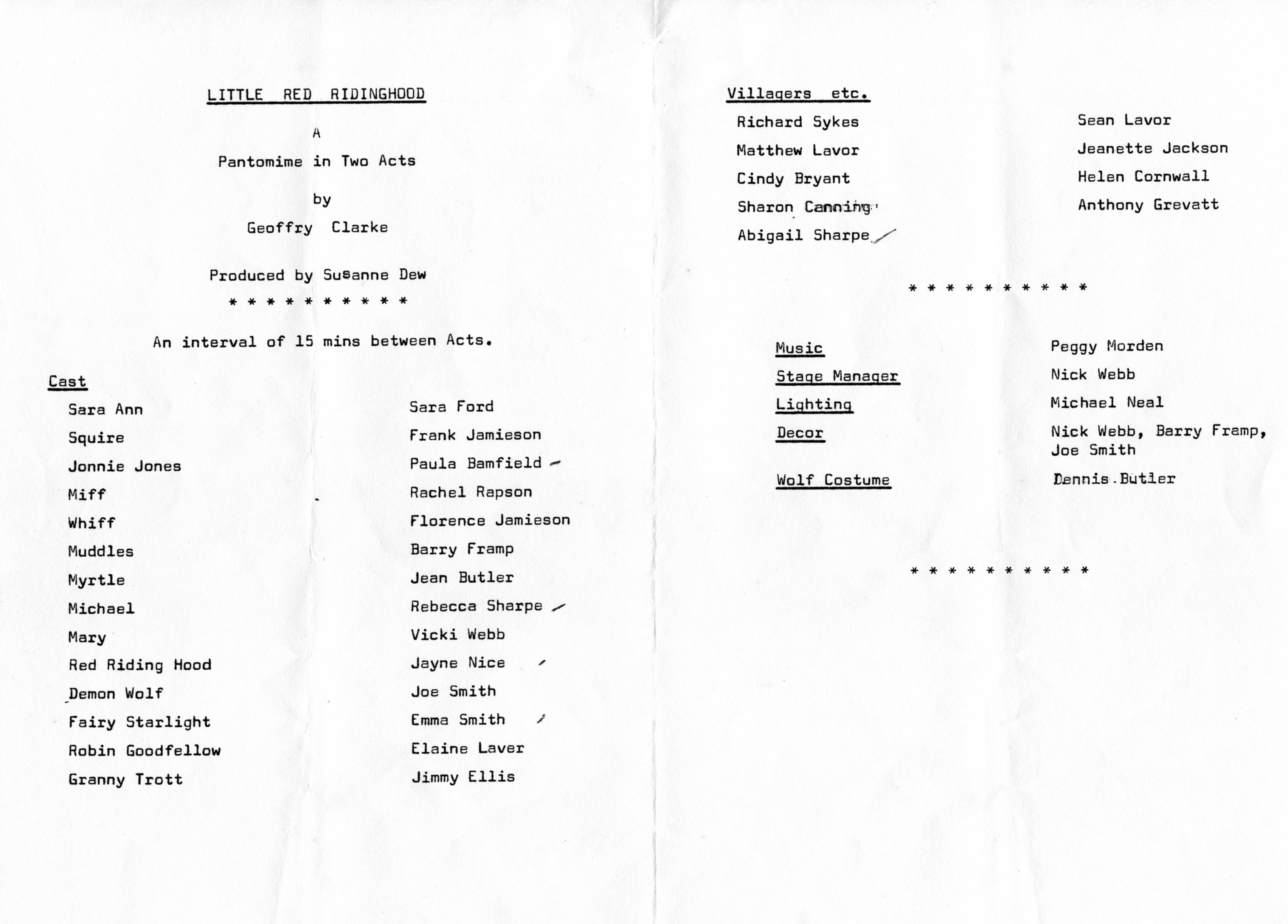 | 1965 | Little Red Riding Hood (director: Di Rabbetts) - programme |