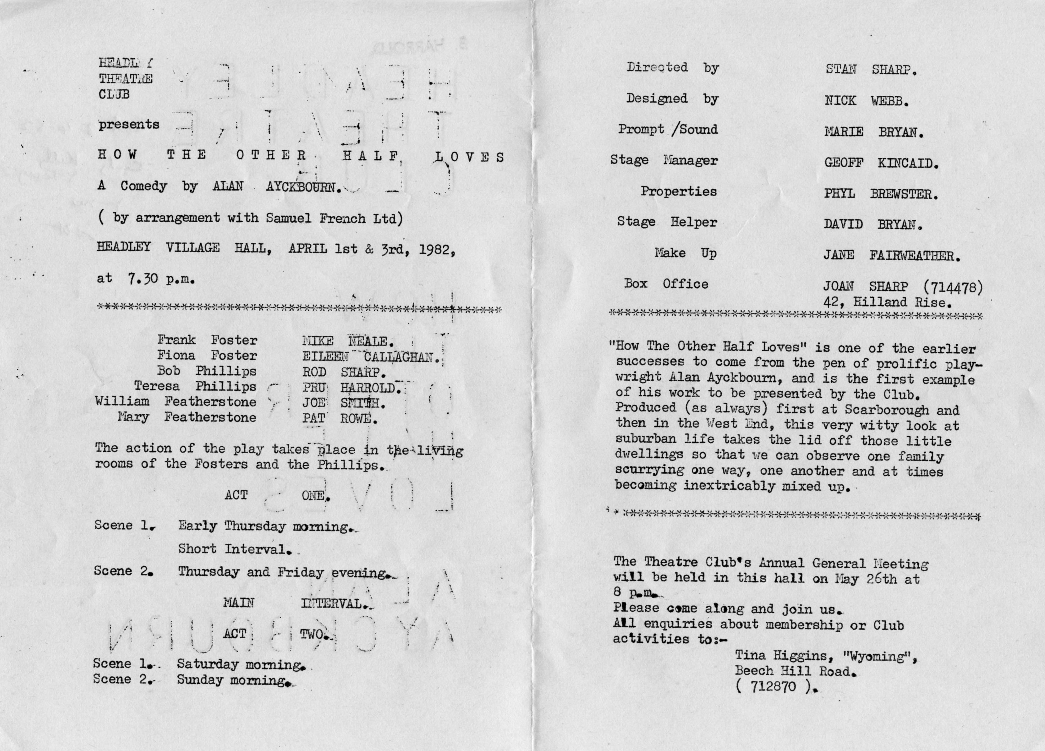 | For further performances, see https://headleytheatreclub.uk/past-productions/ |