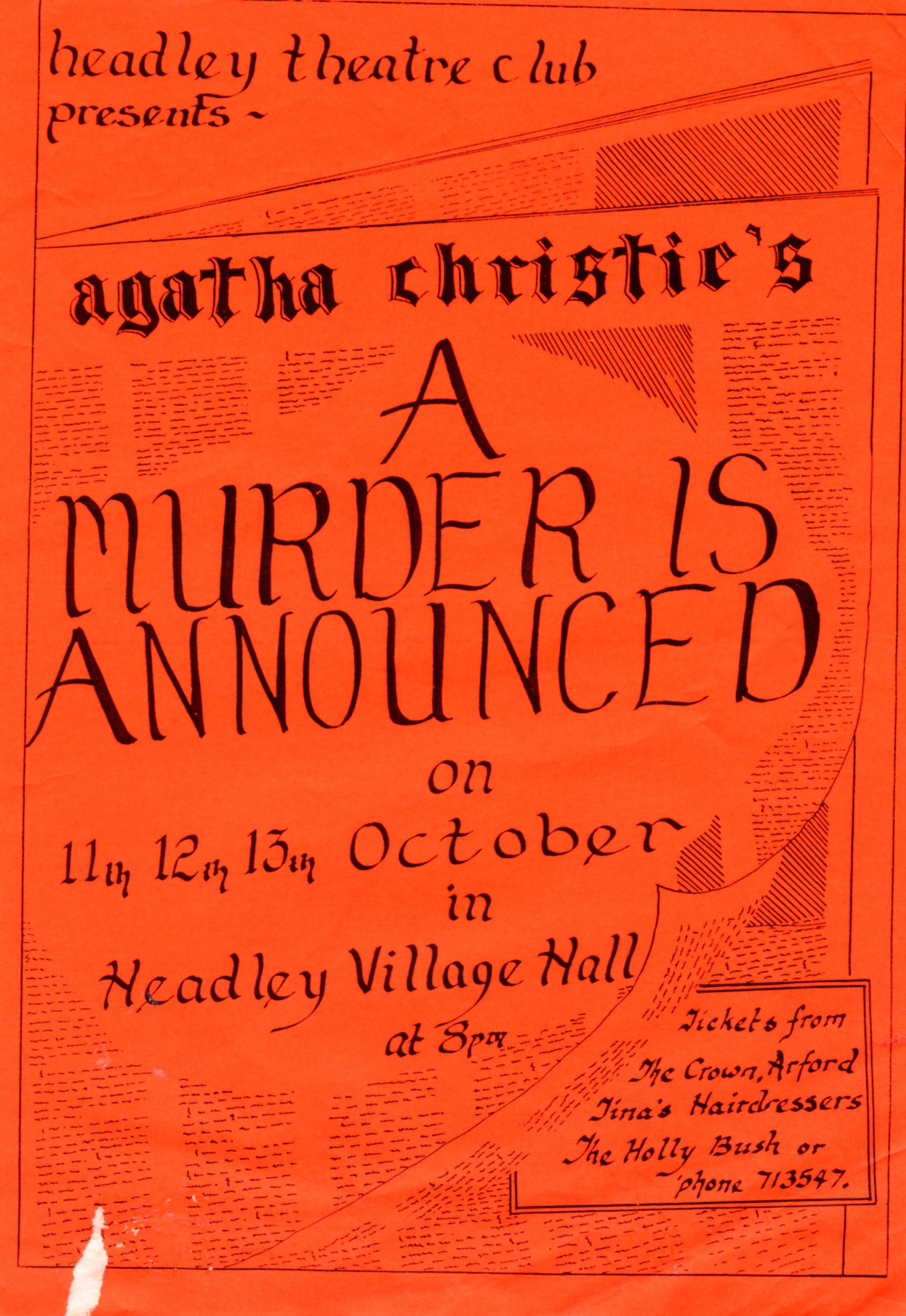 | May | Murder à la Carte, performed at Blackmoor Golf Club (dir: Jill Turner) |