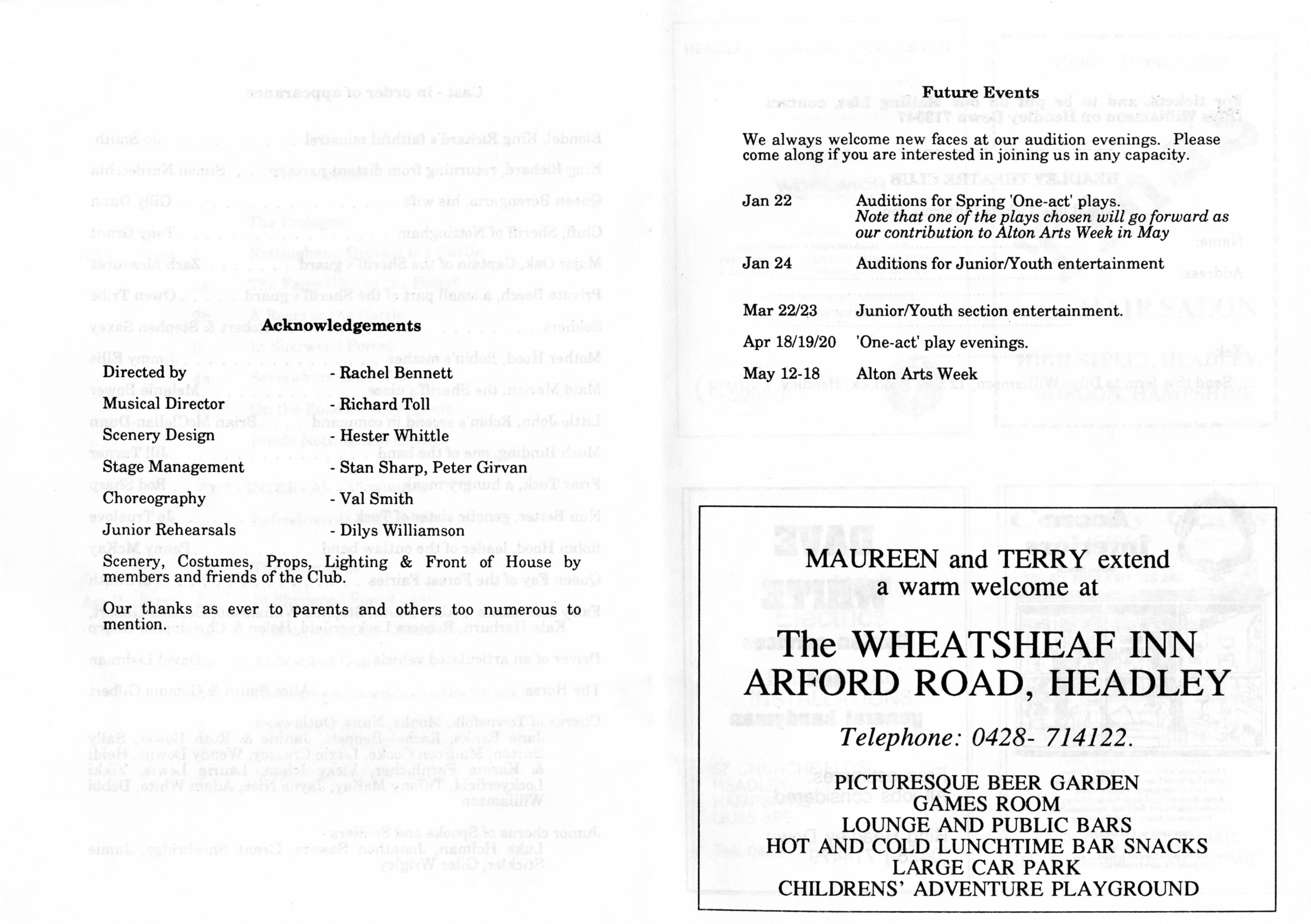 | 1974 | Robin Hood & Babes in the Wood (dir: Di Rabbets/Marie Bryan) - photo & report - photo 2 - programme inside - outside |
