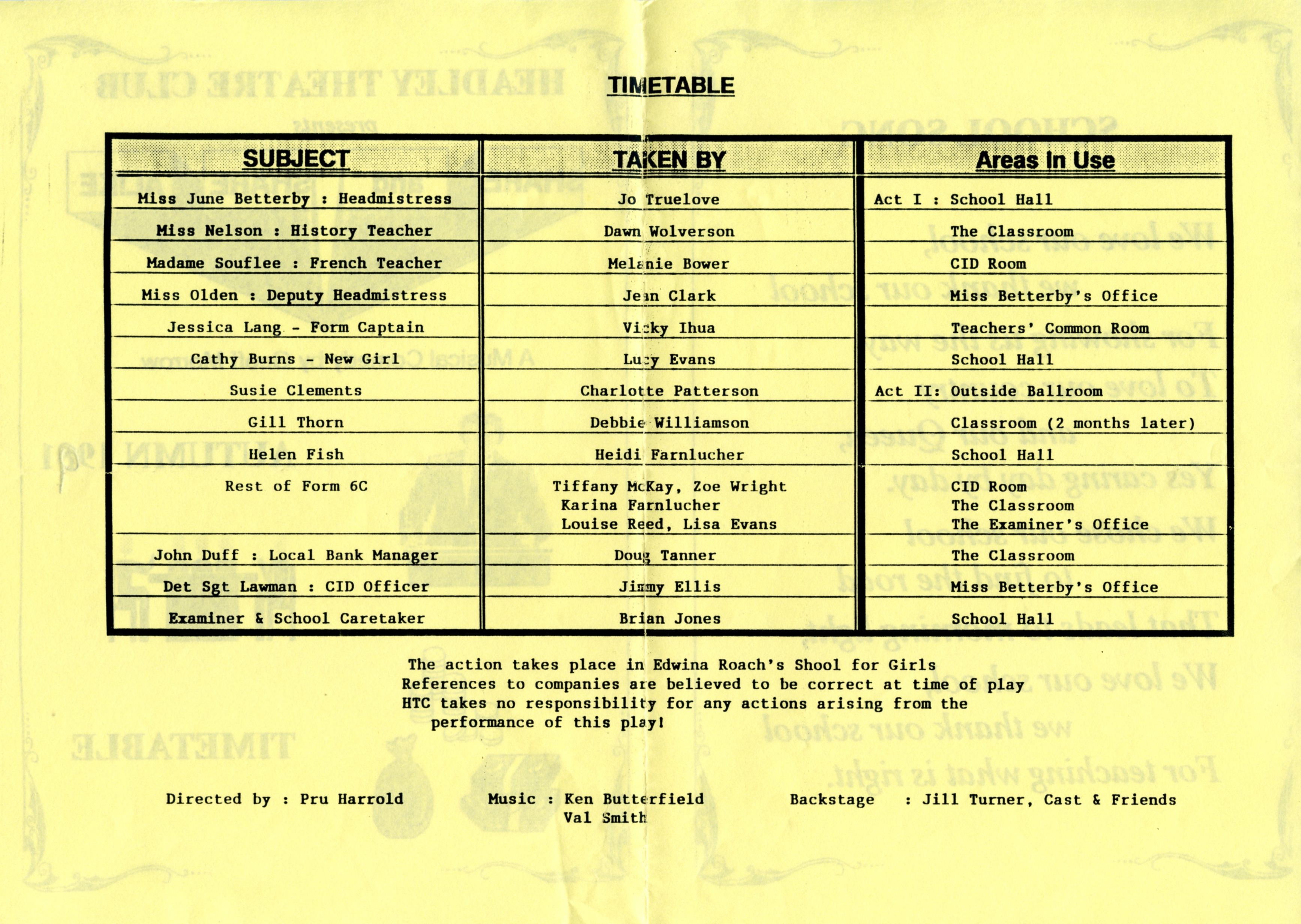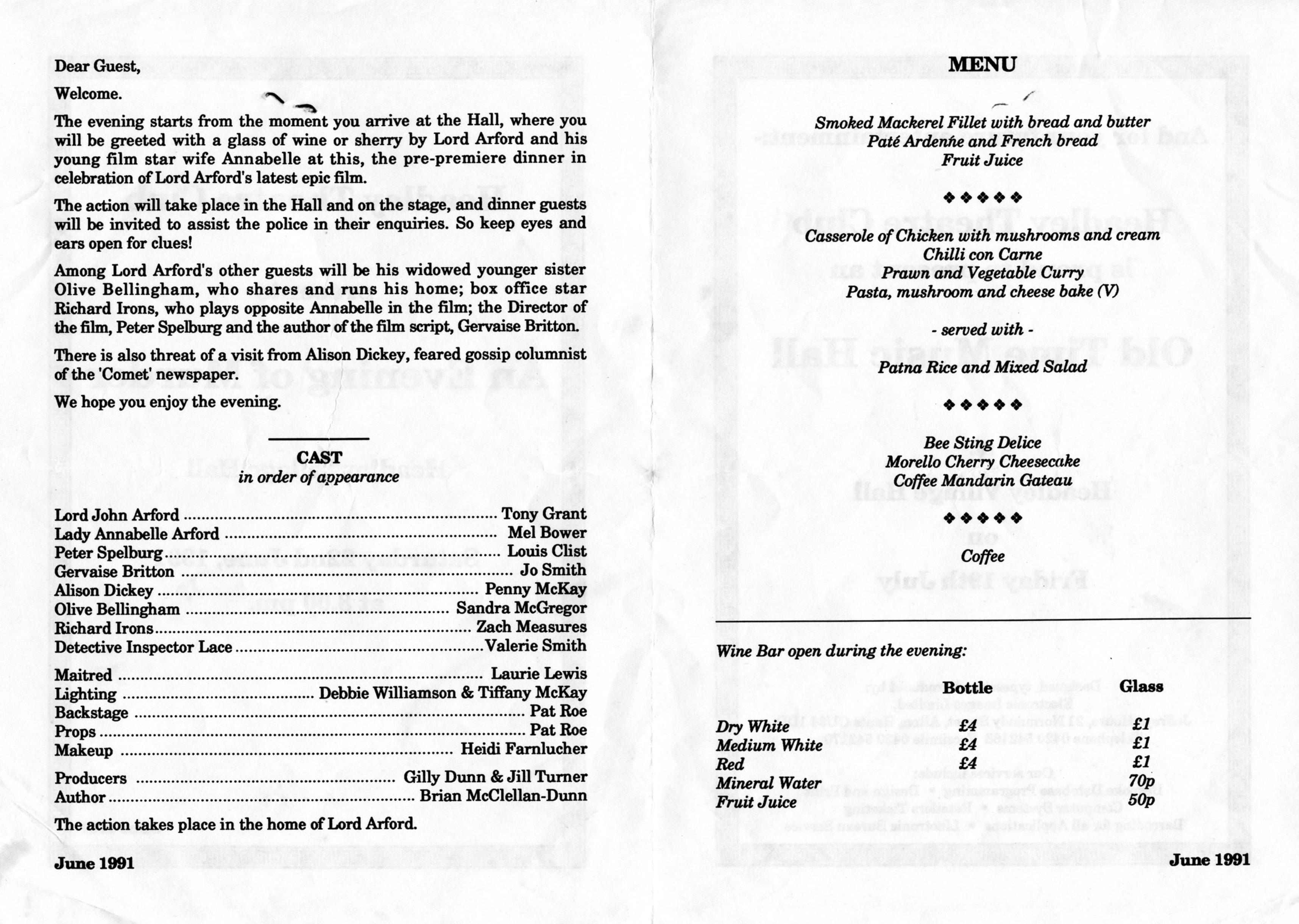 | Apr | 'The School Reunion' – a Murder Mystery (dir: Steve & Mel White) – poster – programme |