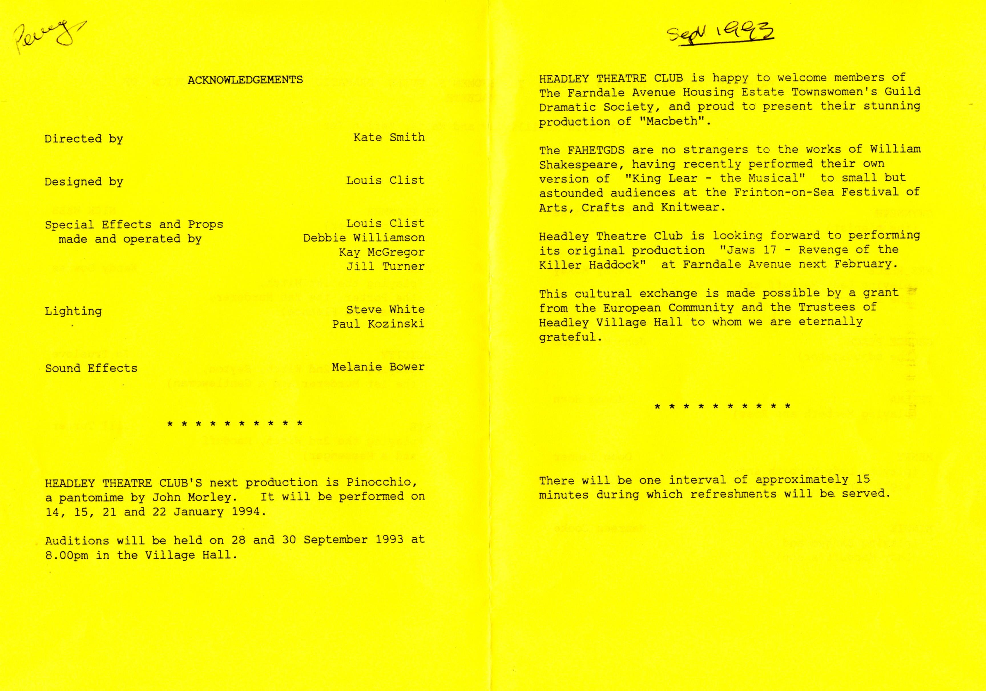| Apr | Wyrd Sisters (dir: Steve White) with food – cast – photos, programme & poster |