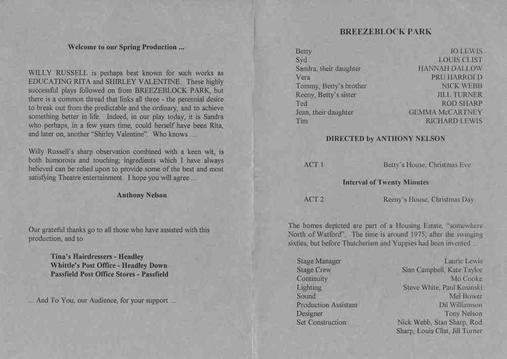 | May | The Grass is Greener (director: Di Rabbetts) - programme |