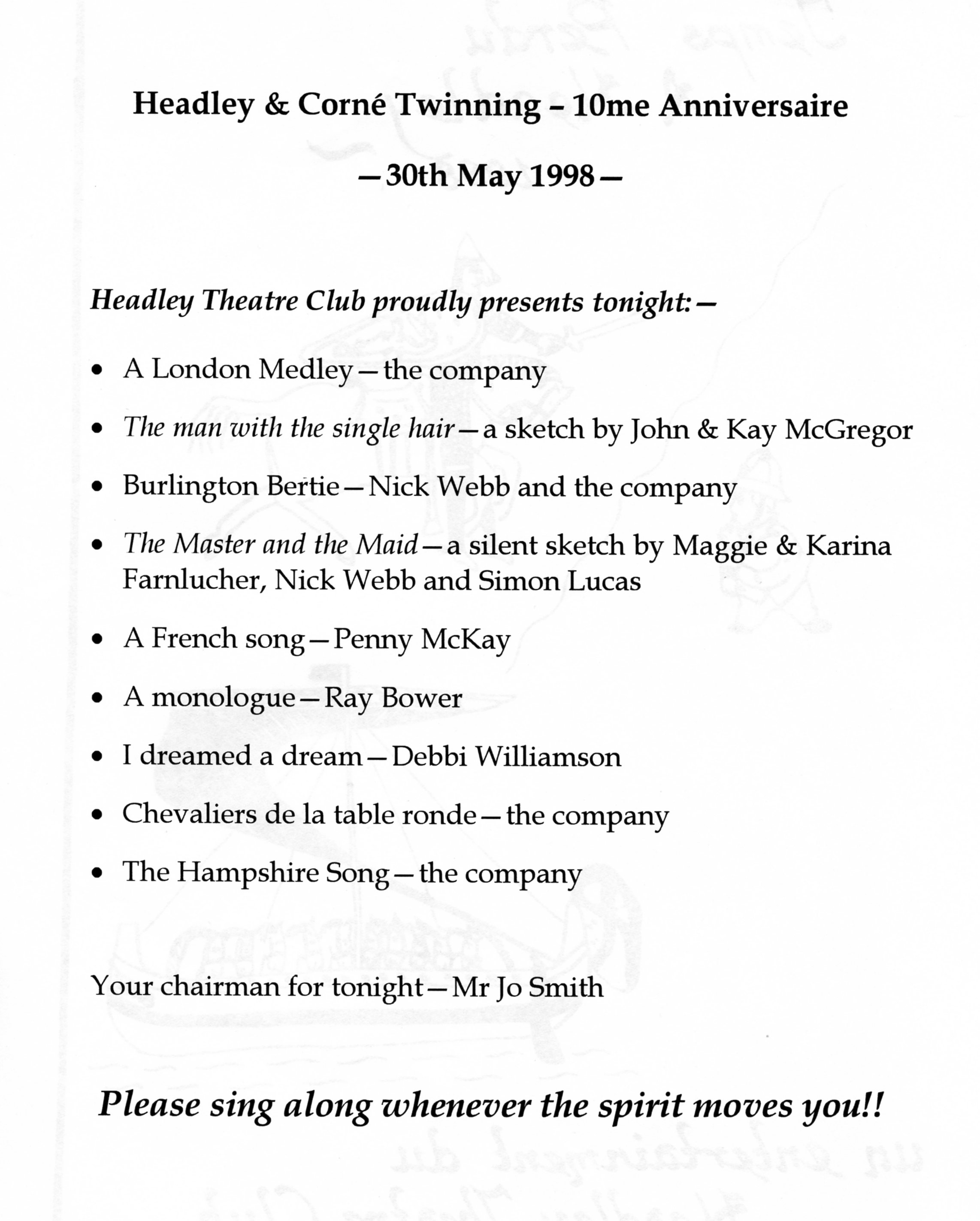 | May | Gala performance (for Village Hall funds) - programme inside - outside |