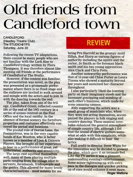 | July | Lark Rise (dir: Steve White - prod: Jo Smith) – cast – photos – programme [touring] |