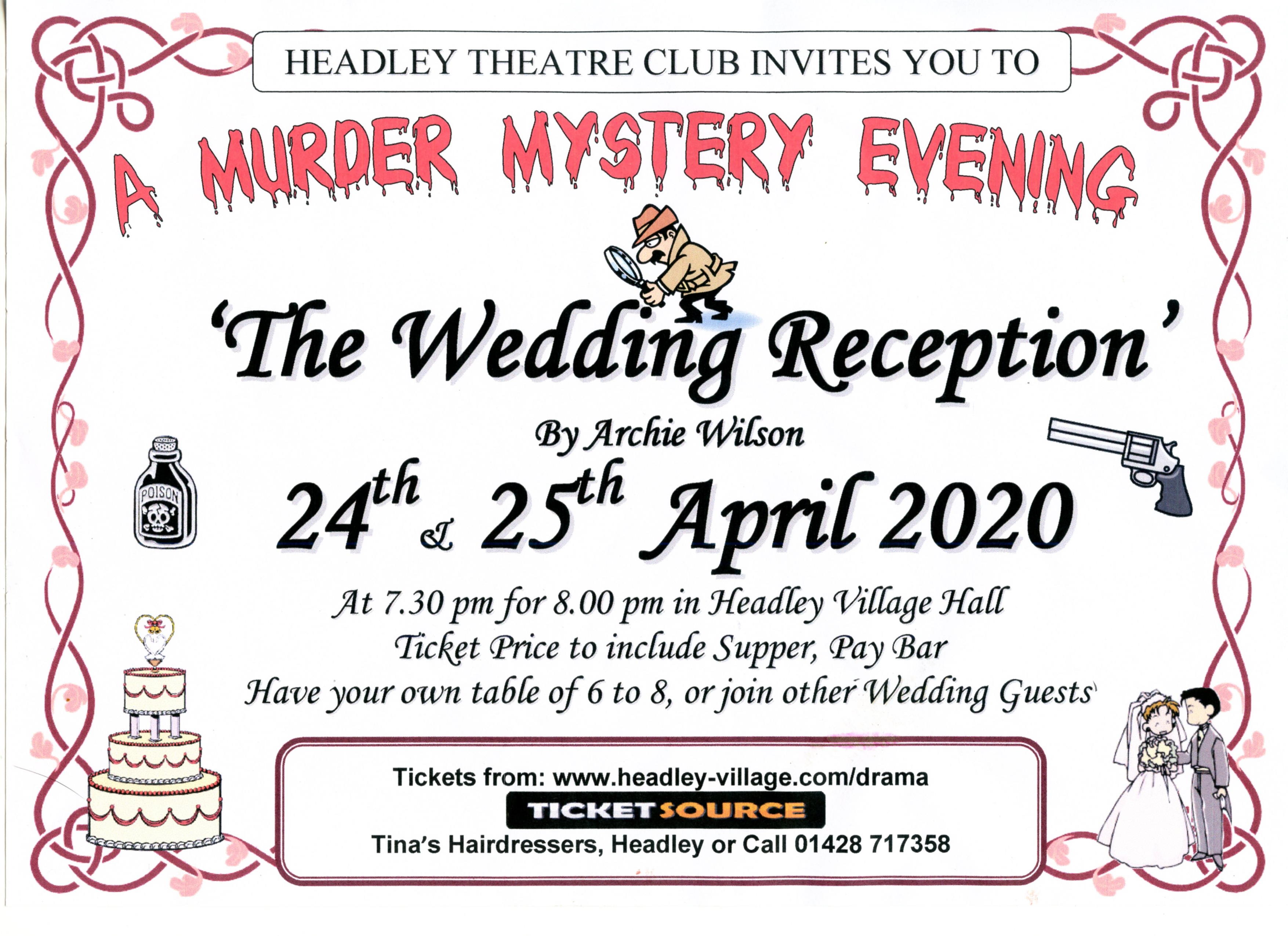 | May | 'The Wedding Reception' (a murder mystery) with food – photos & poster – cast |