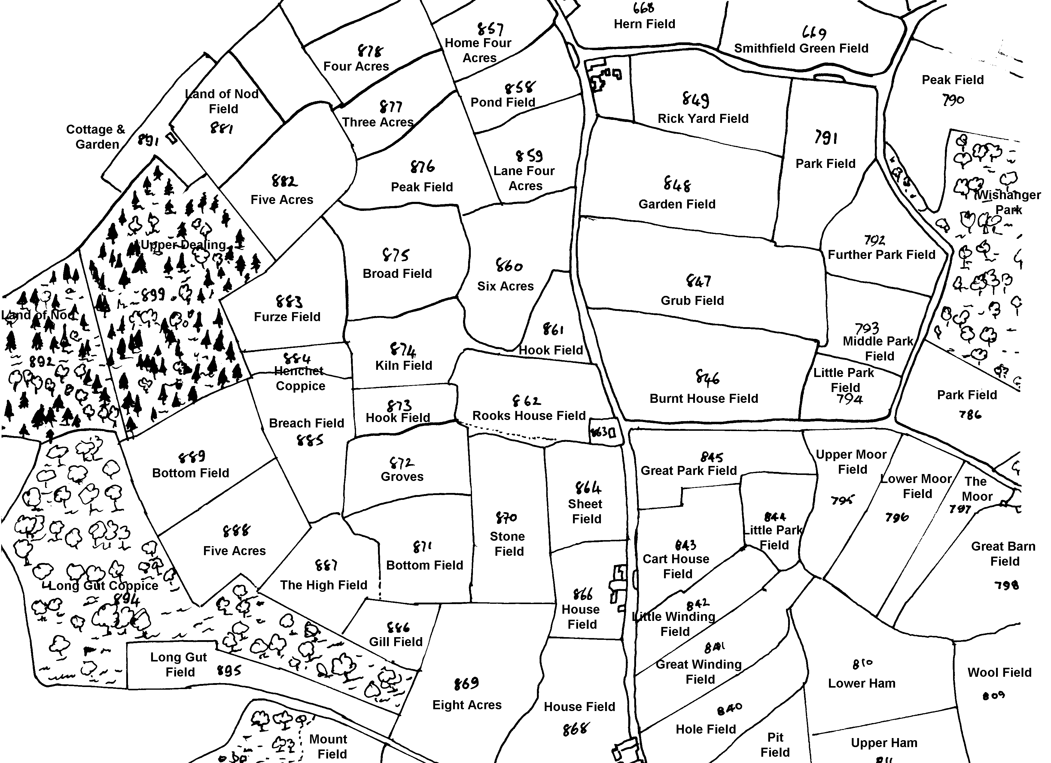 We believe this is the 'Map B' mentioned in the Enclosure Award of 1859 Plot numbers are those first used in the Tithe Allotment of 1846