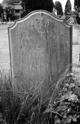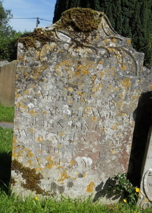 In memory of / John RIVERS / who died / May 12, 1788 / aged 50 years / Grieve not for me, dear wife, it is in vain; / although it is your loss, it is my gain; / It is God’s will it should be so, / therefore from you I am forced to go |