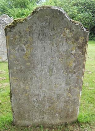 In memory of / William CAIGER / who died / April 15, 1777 / aged 82 years / Ann / his wife / died January 31, 1749 / aged 51 years [see photo] |