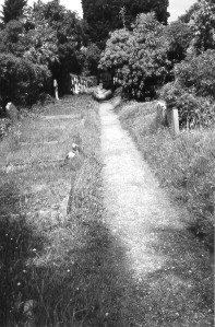Photo of the path through the 'long churchyard' Section D is the strip on the left. Plots 17-13 to 17-110 |