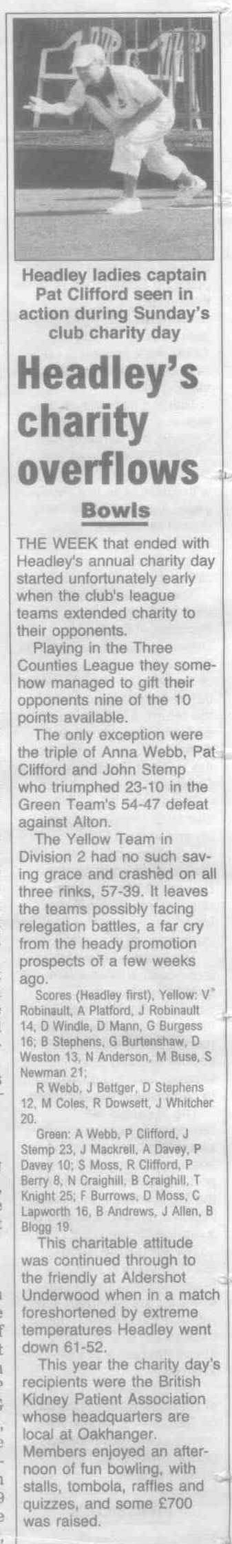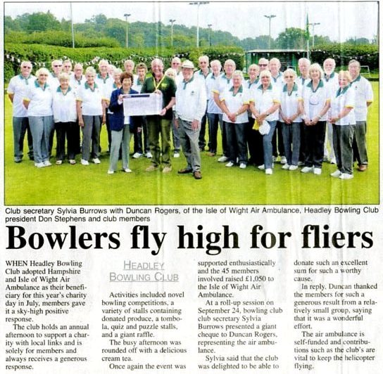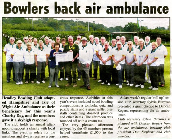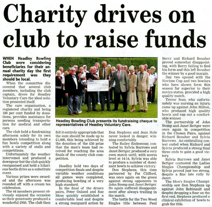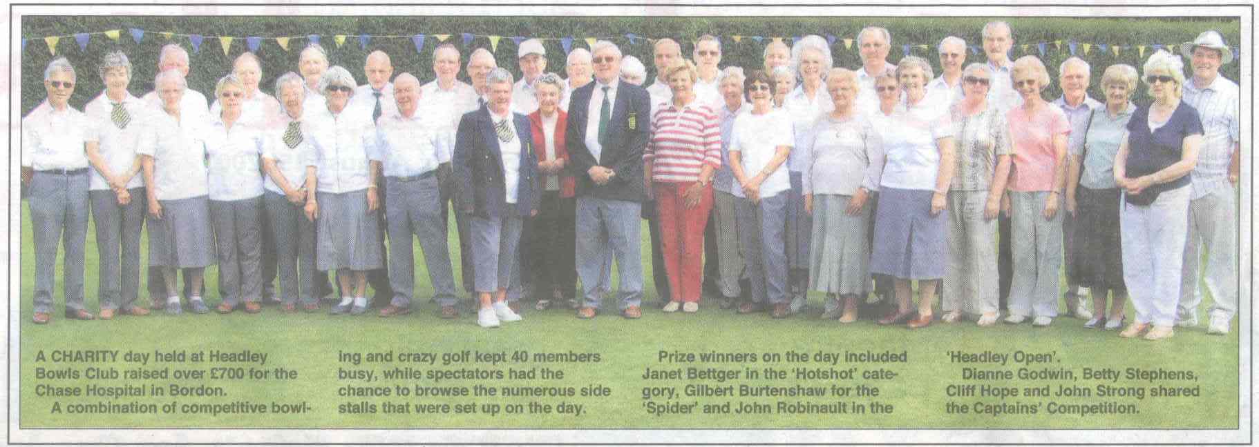Headley Bowls Club: charity day for Chase Hospital | P |