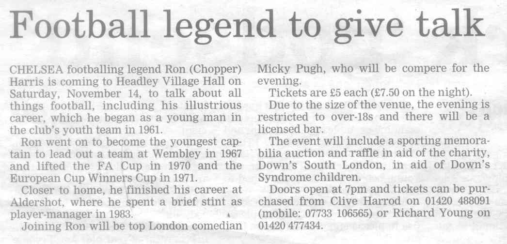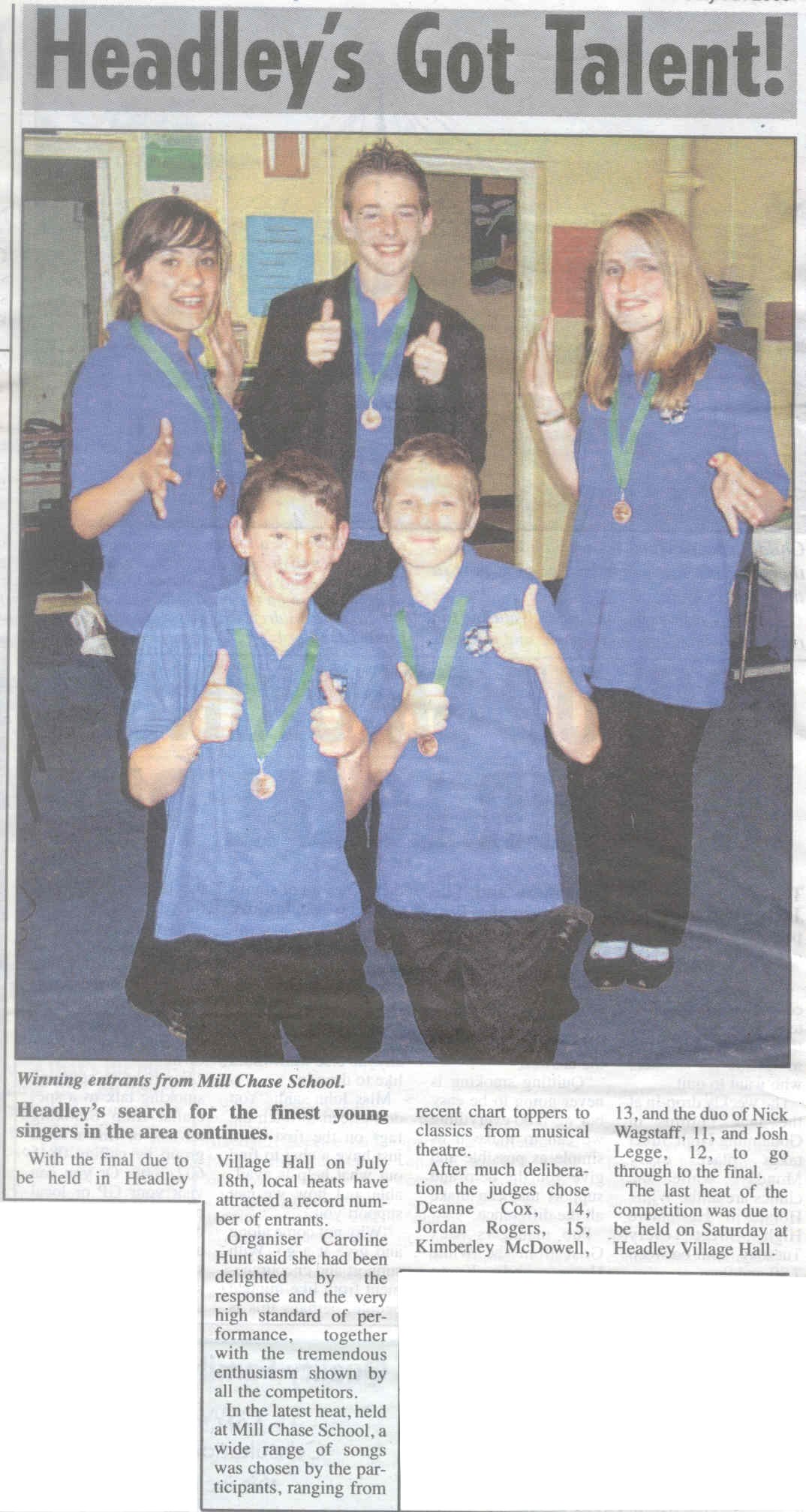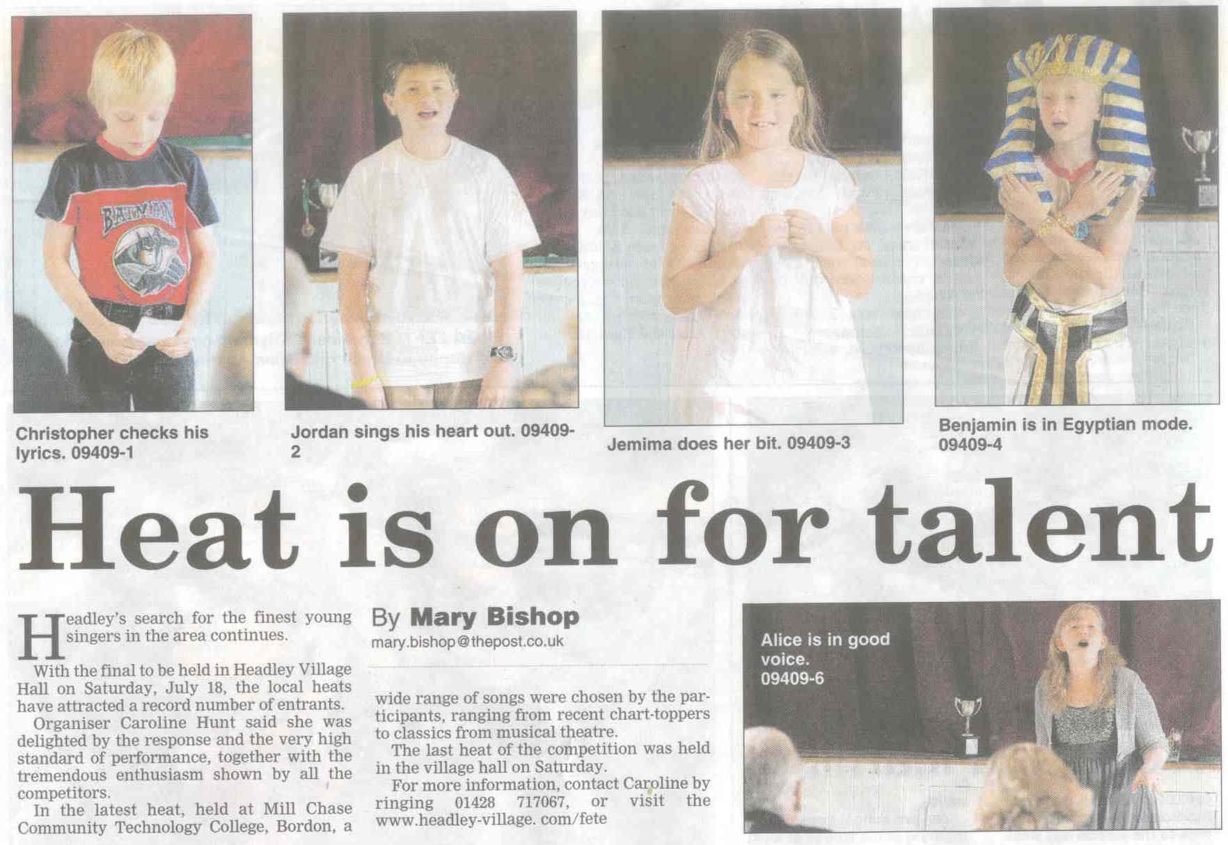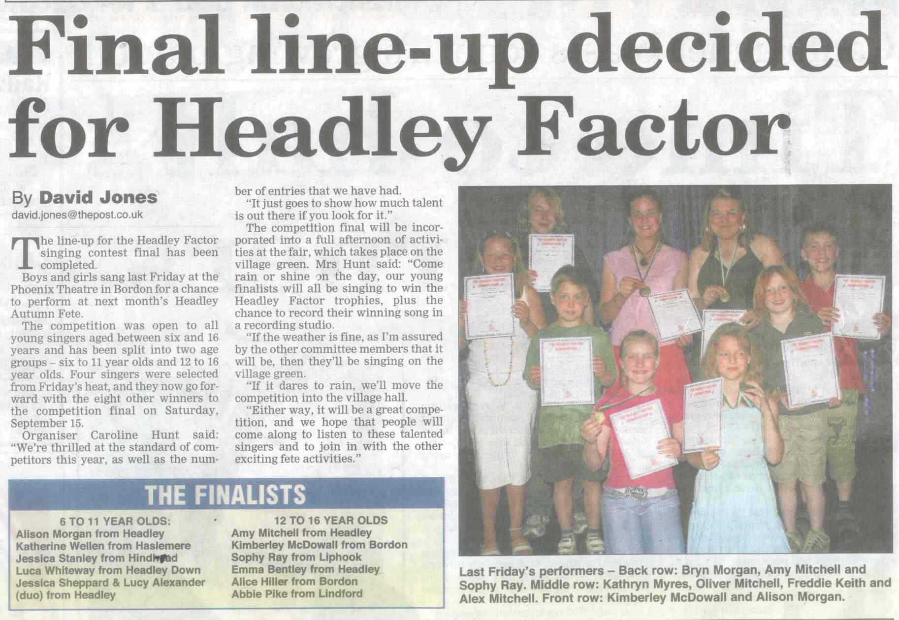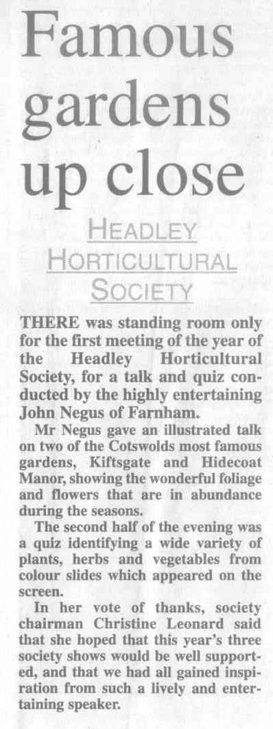 | 1970 | Jul-02-Hants Telegraph | Fancy dress winners at Headley Down fete - Jeremy Harvey, Helen Fenton, Gillian Wheeler, Sarah Fenton, Raymond Hill. Judges: F Longhurst, Miss M McAndrew, Mrs P Hone. | P | |