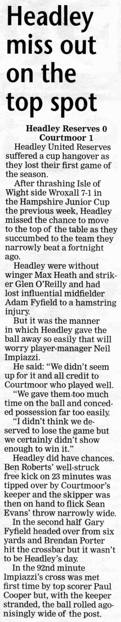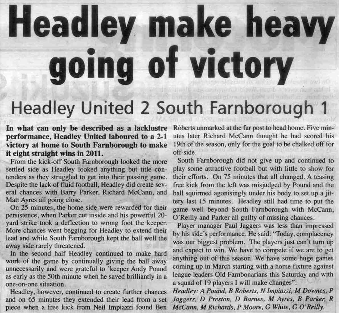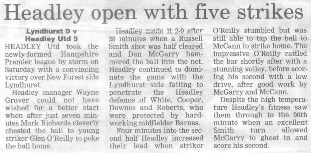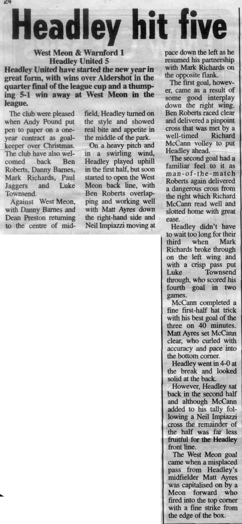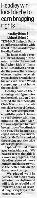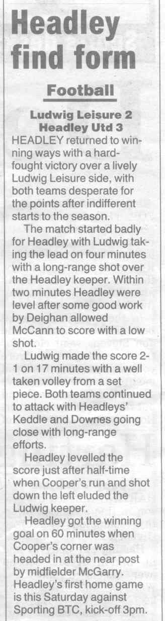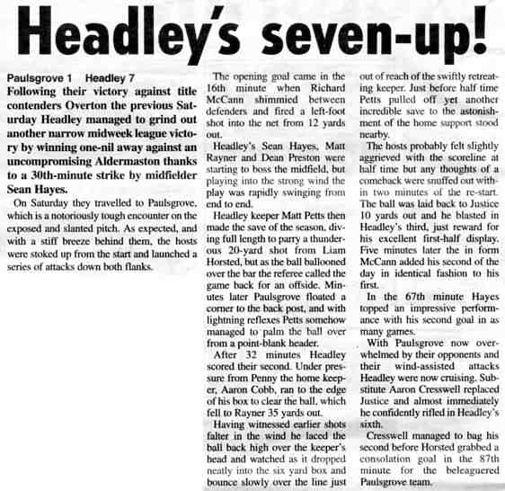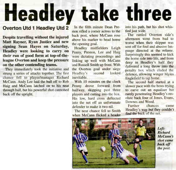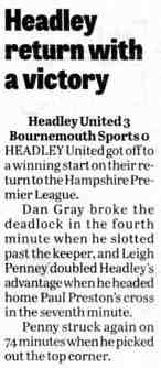 Football report: Headley open with five strikes | |