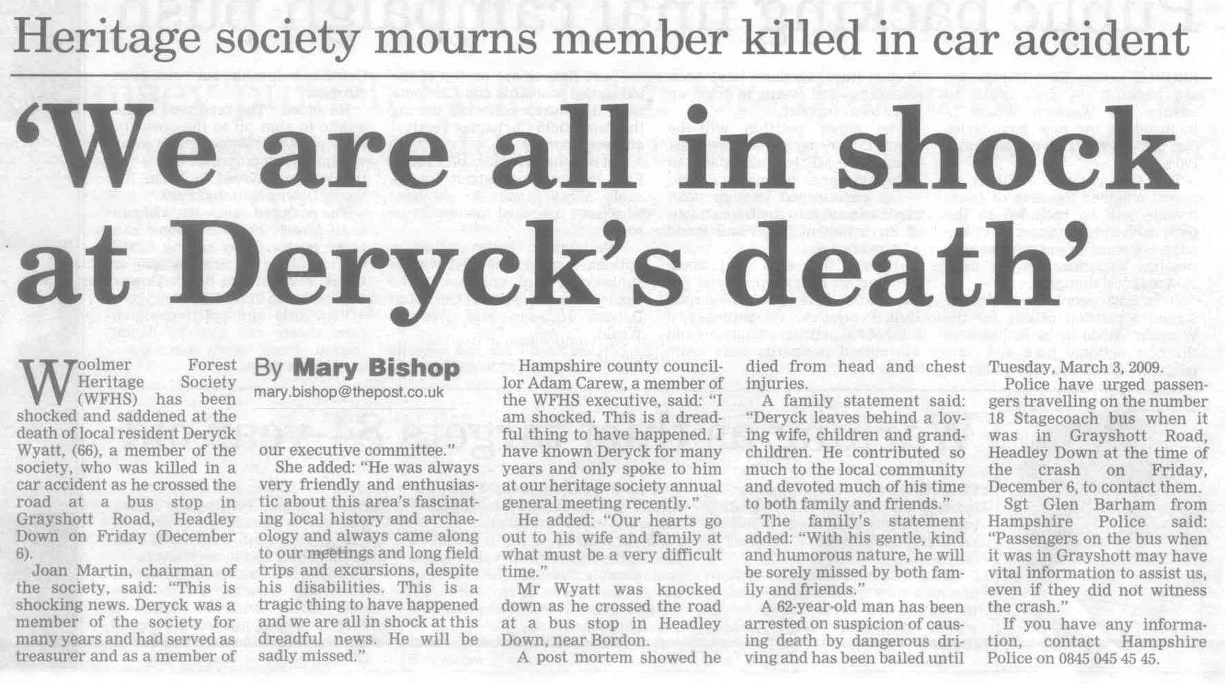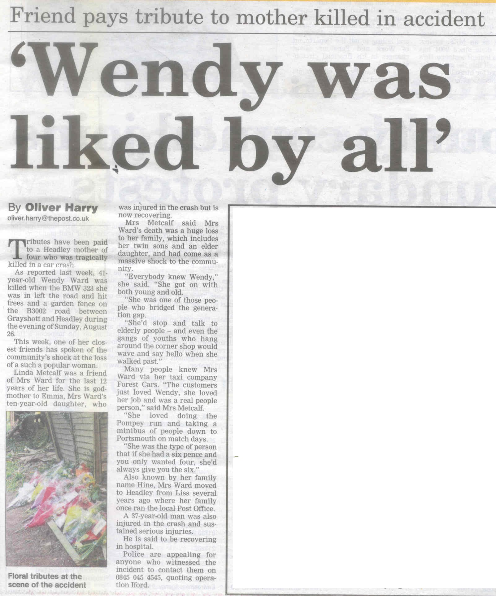 Wendy was liked by all: death of Wendy Ward (Hine) in traffic accident | P |