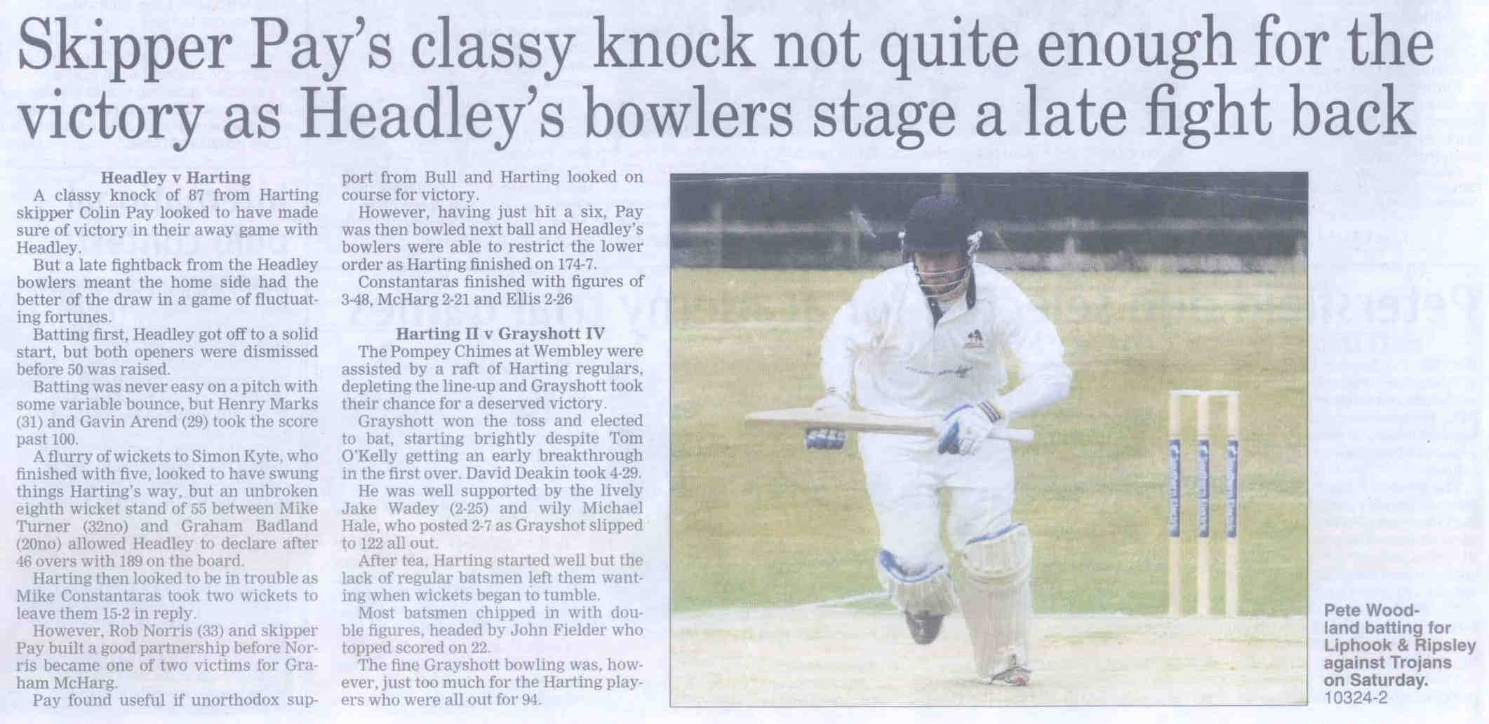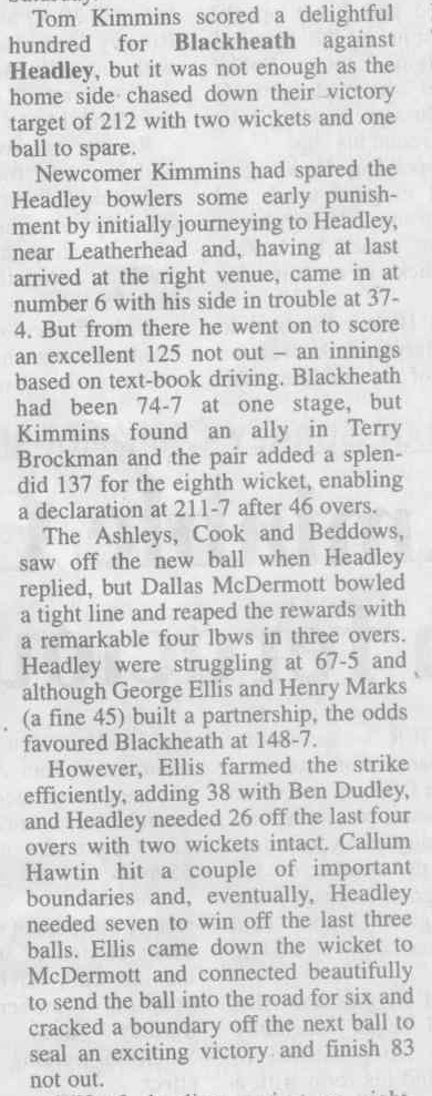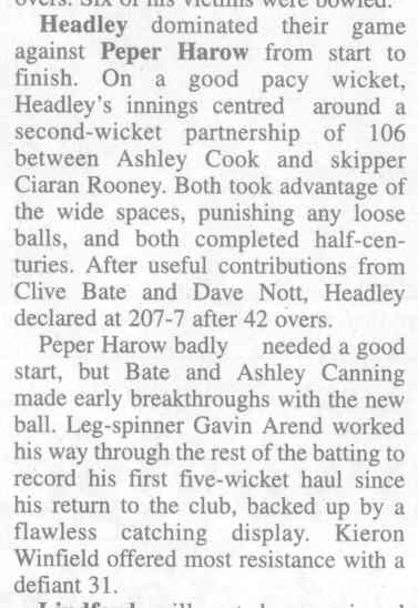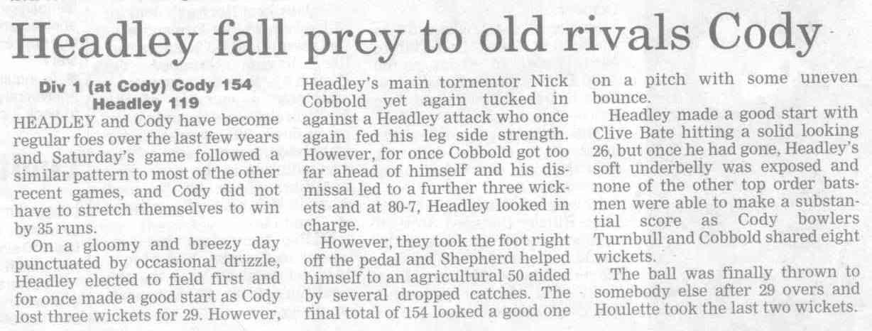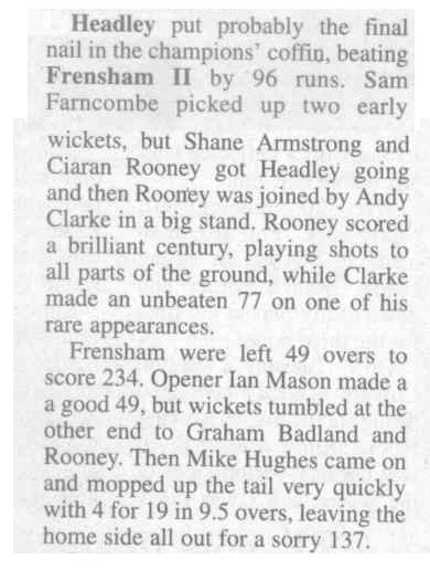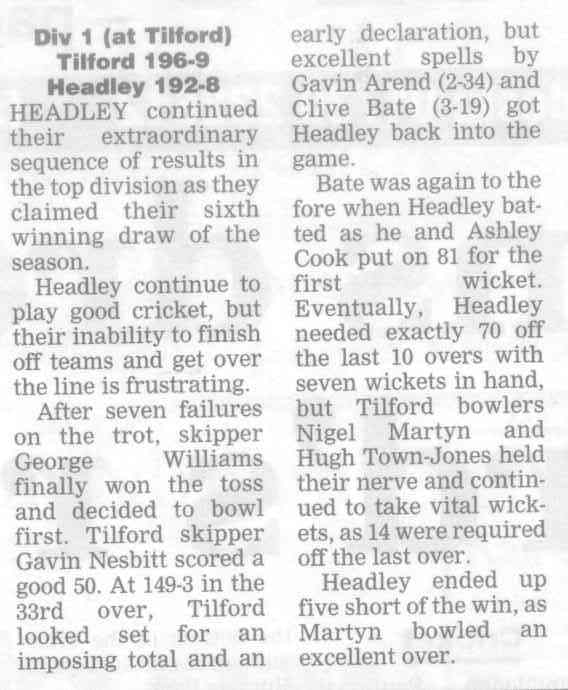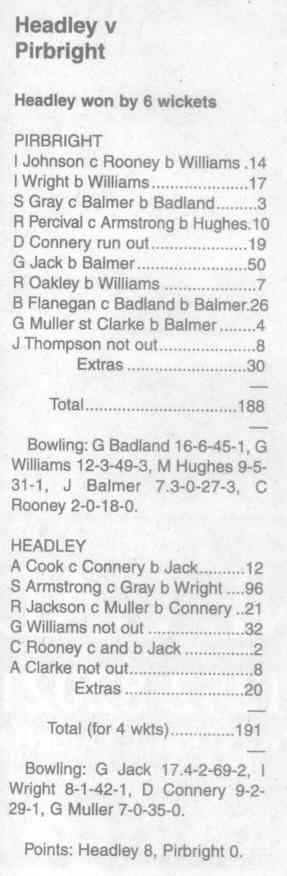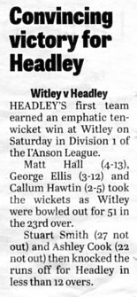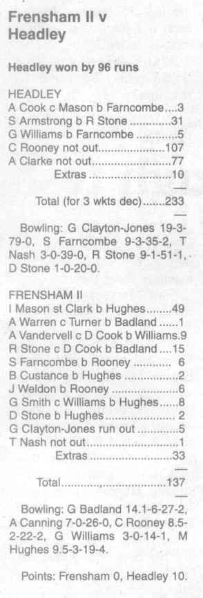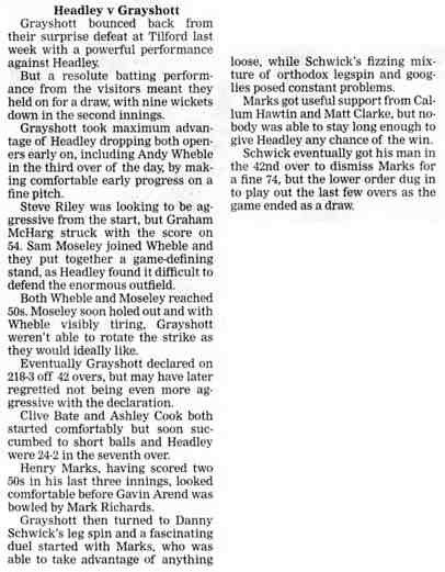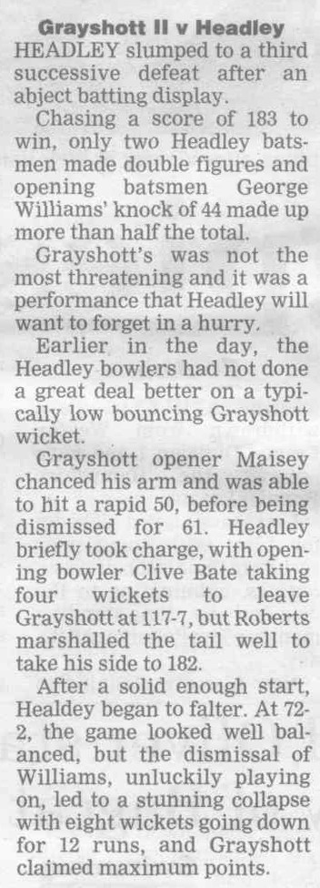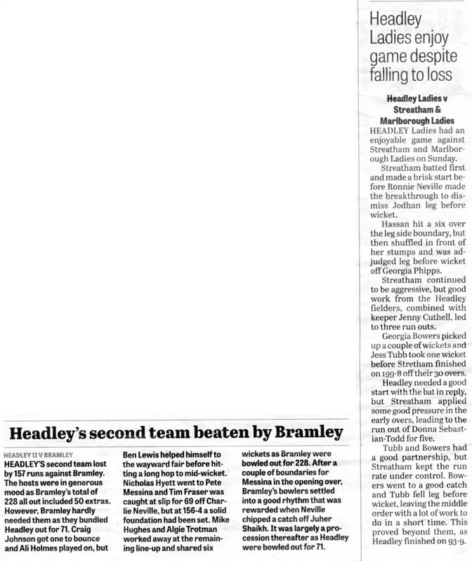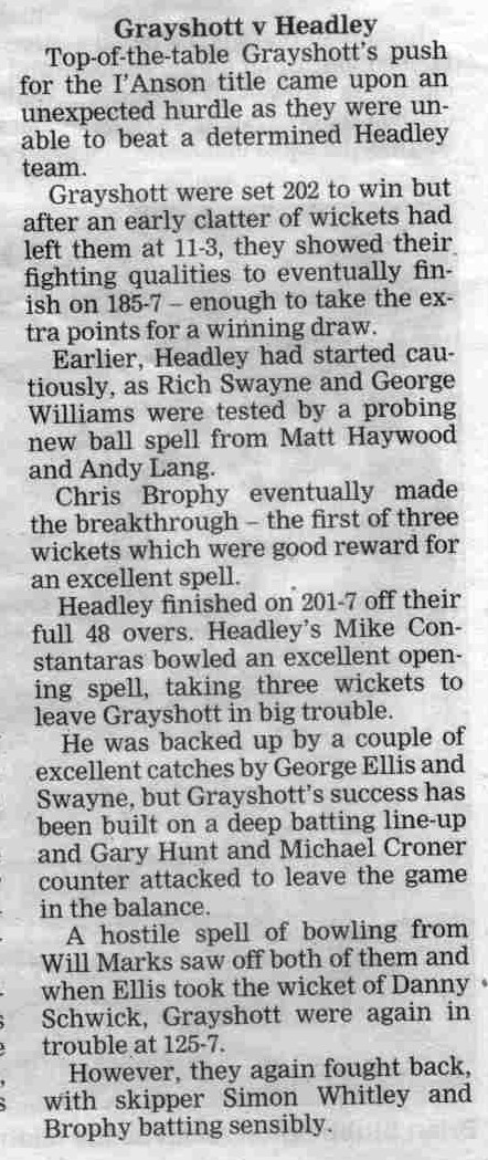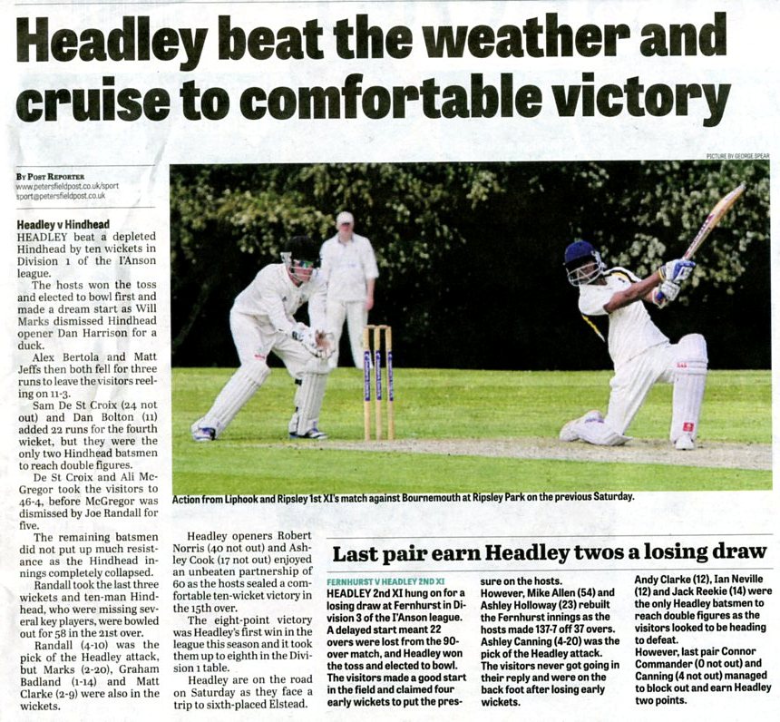 Cricket report: Headley v Hindhead | |