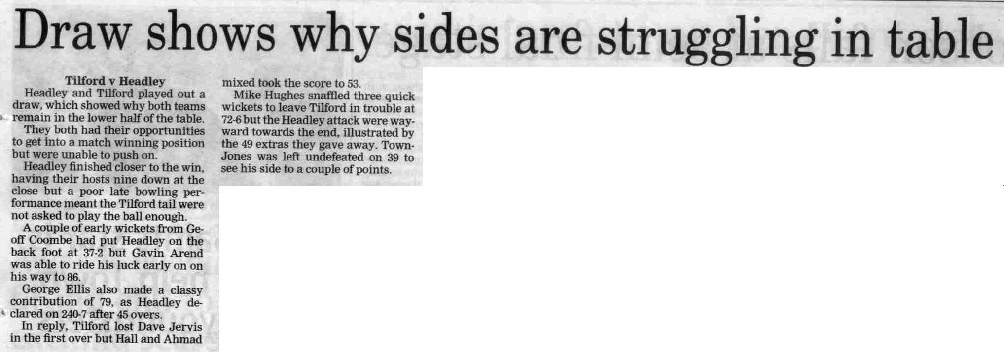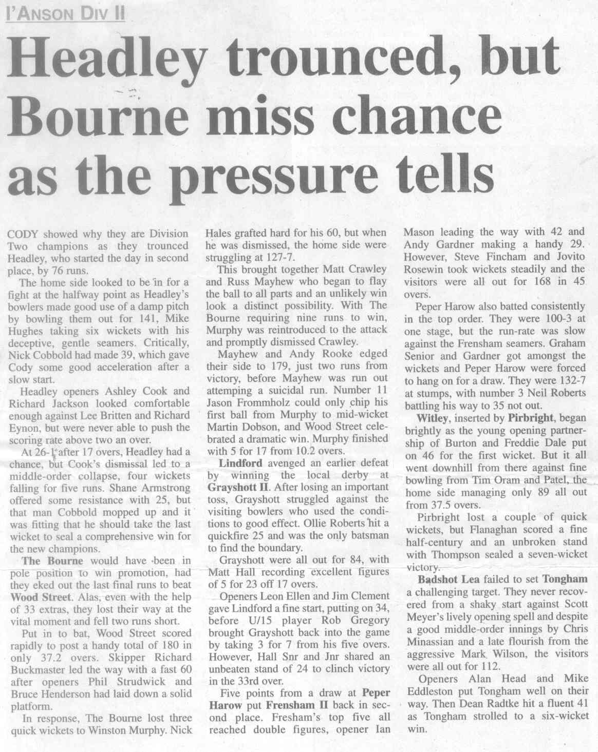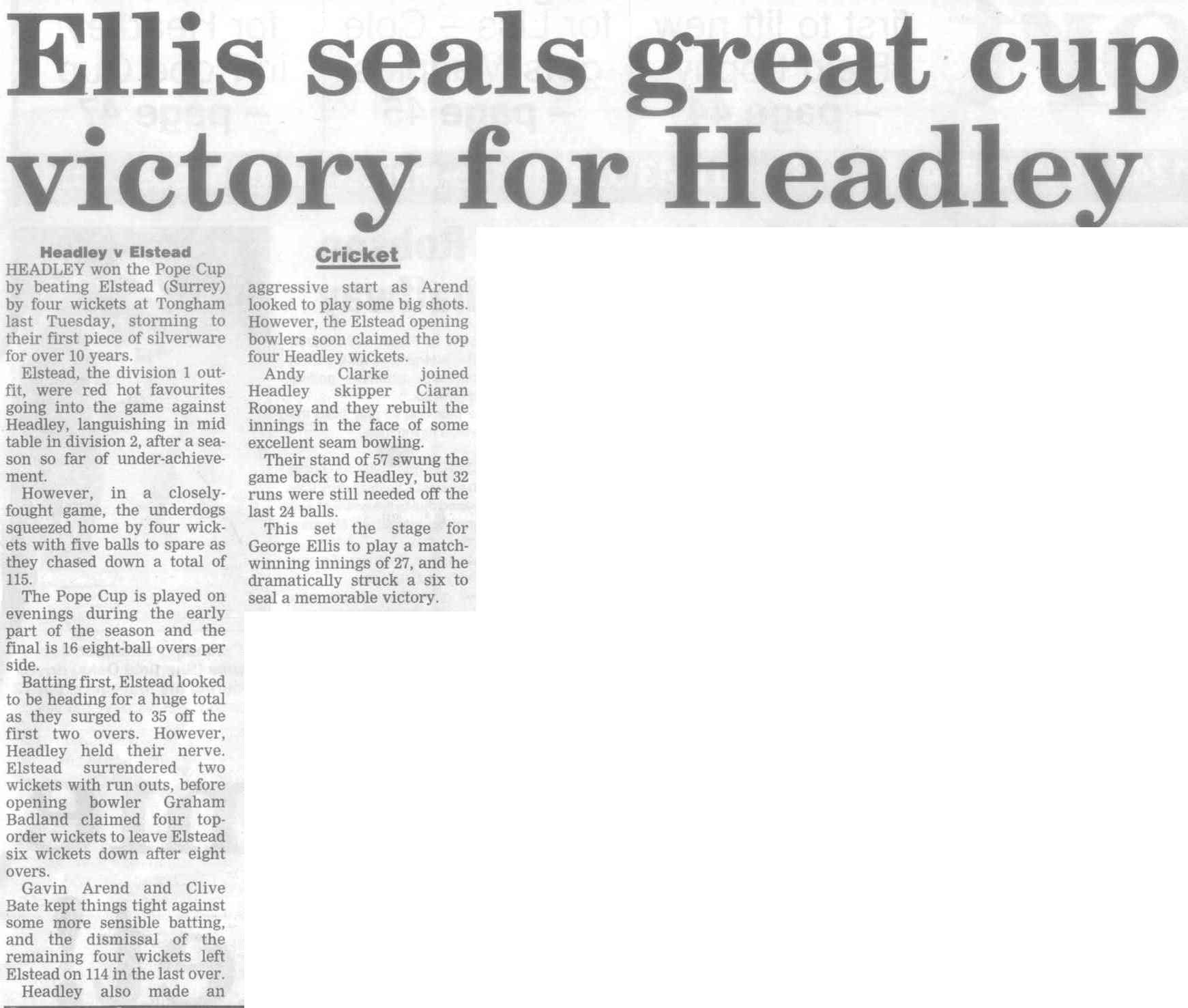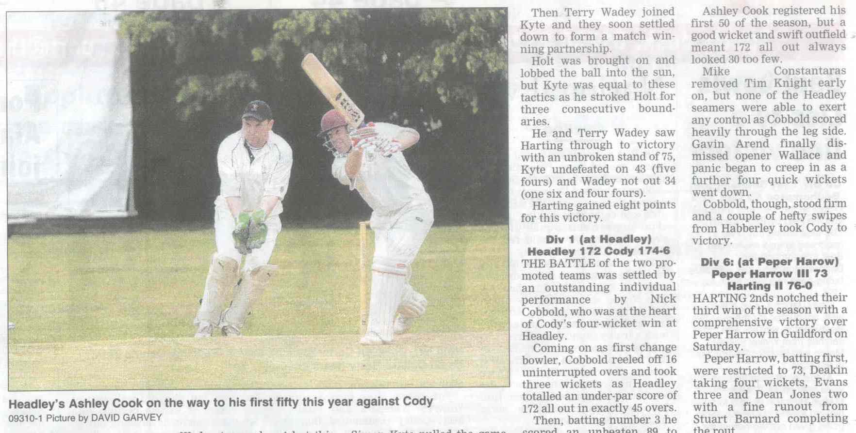 Cricket report: Headley v Hindhead | |