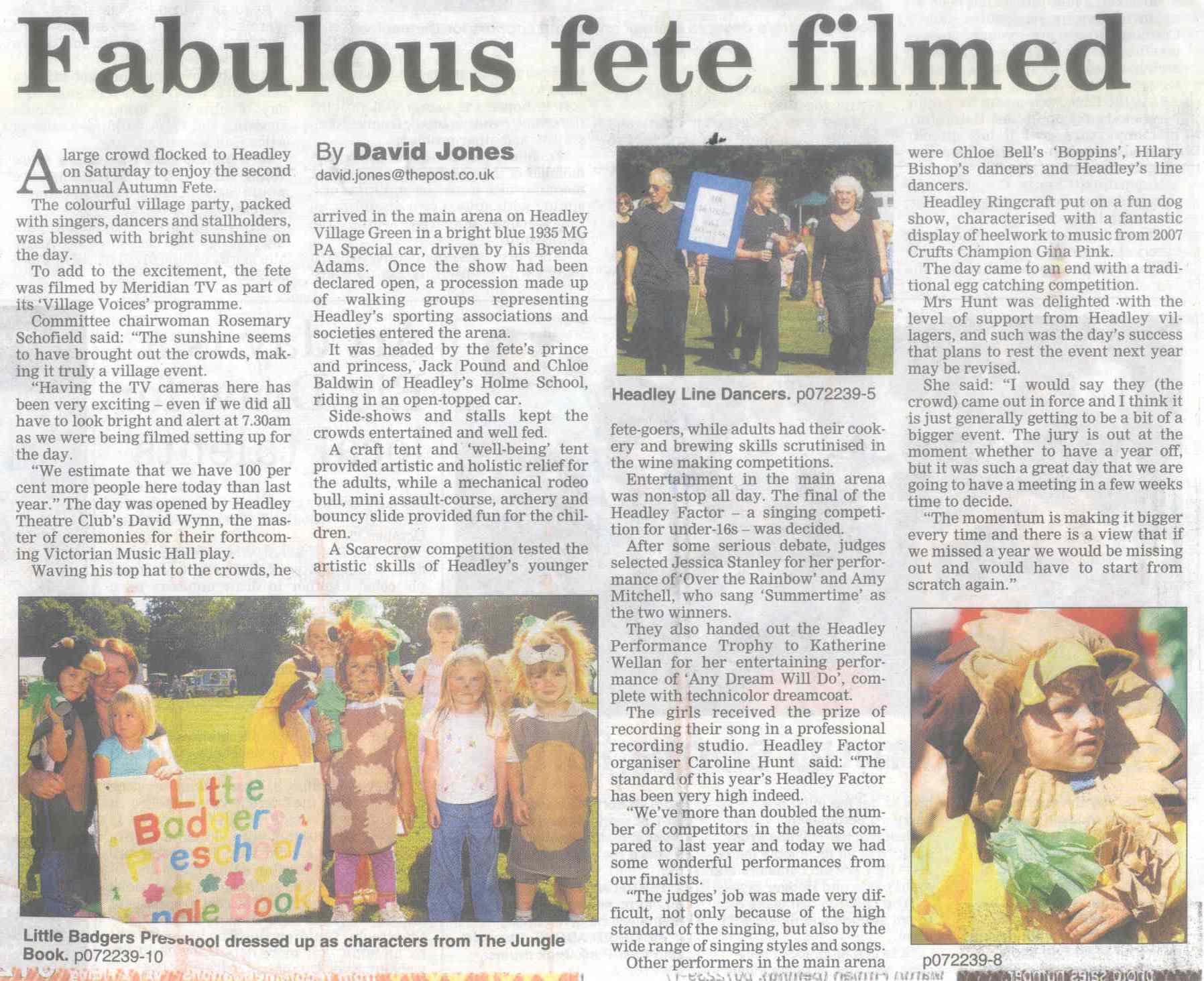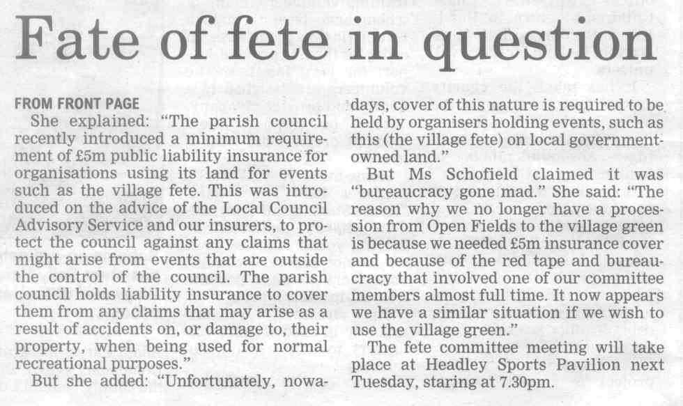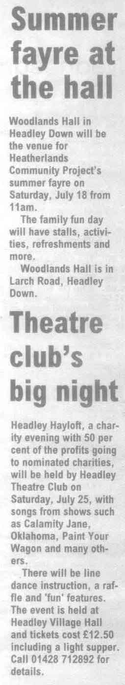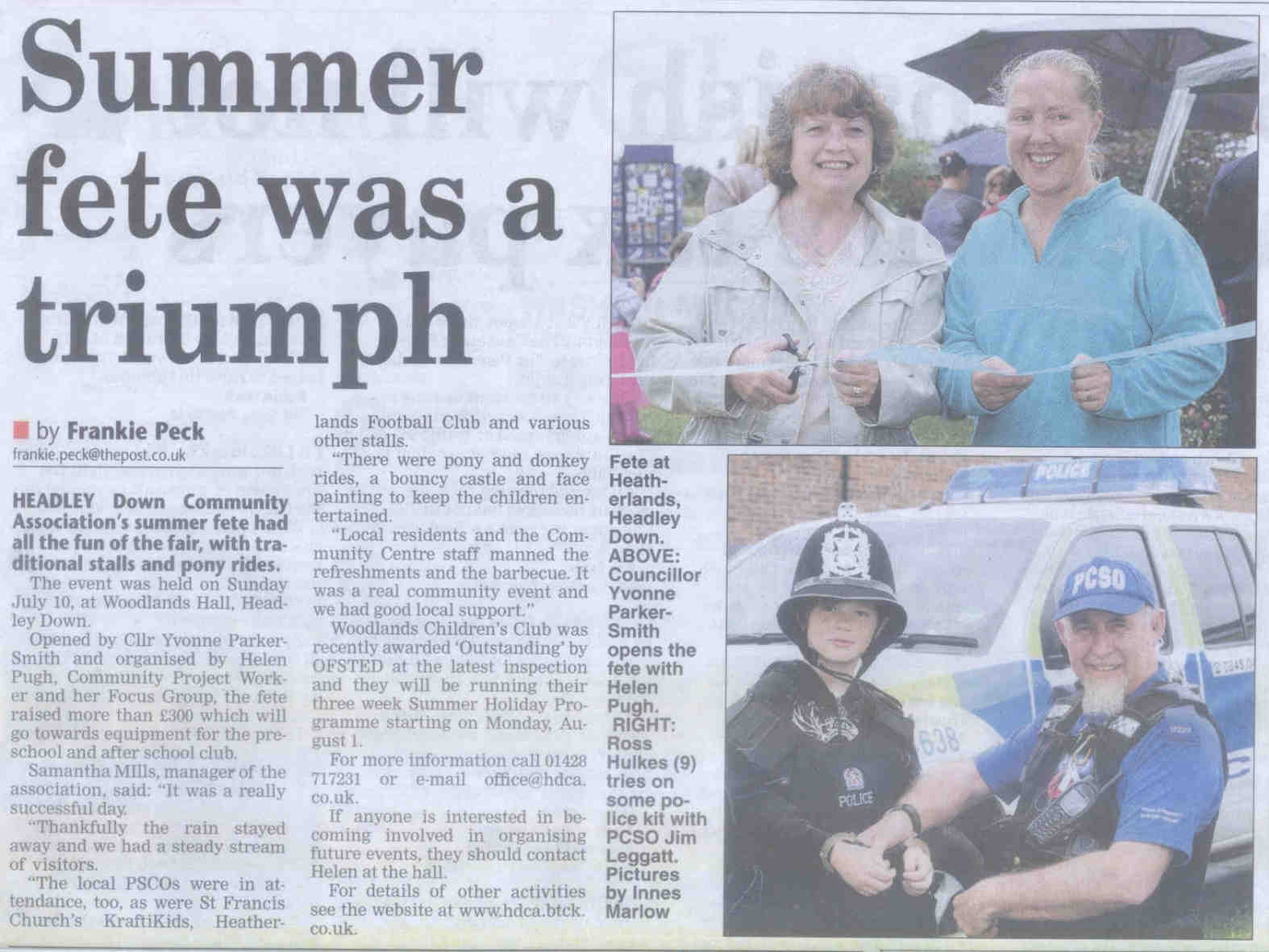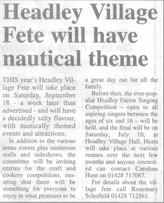 Headley Down turns out to make fete a success - on Headley Down playing field - list of stallholders | ||