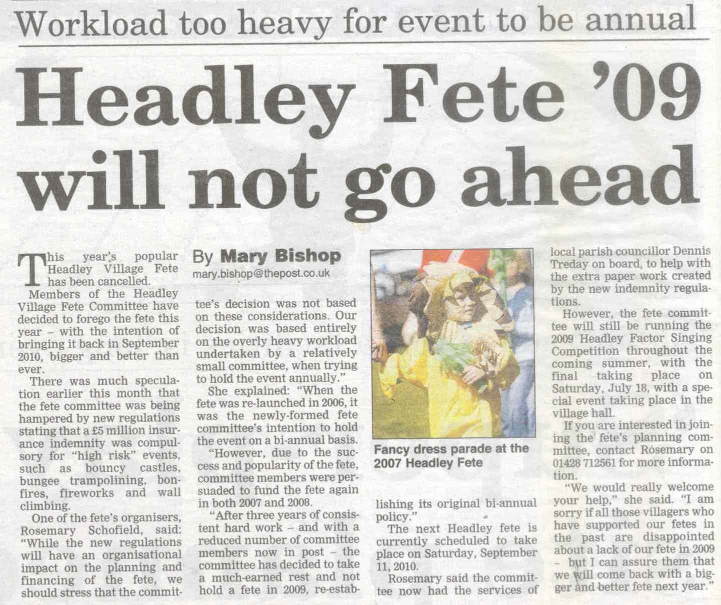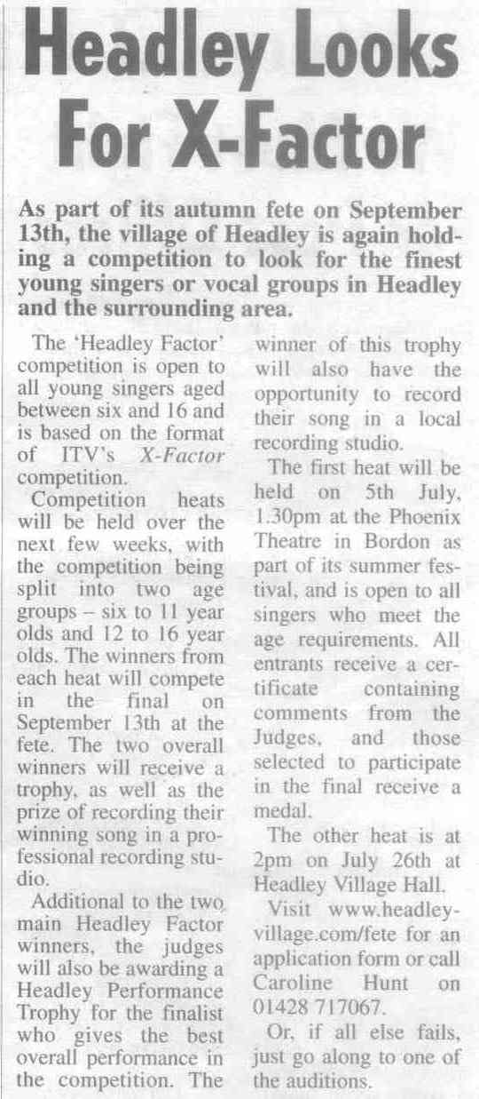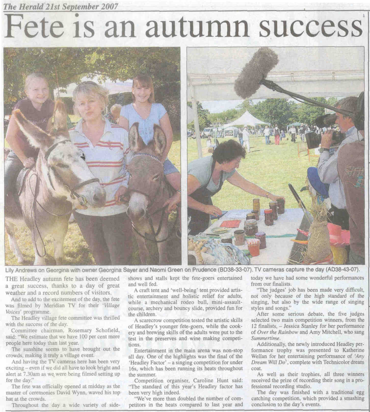 Headley Down turns out to make fete a success - on Headley Down playing field - list of stallholders | ||