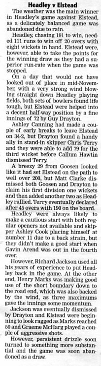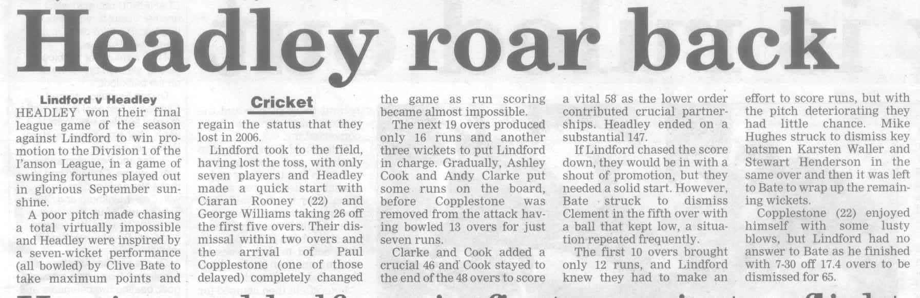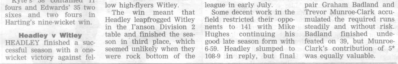 | 2017 | Jul-19-Post | 50 | Cricket: Hawtin and Carter see Headley through to win - Milford v Headley II | |