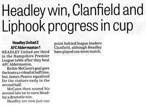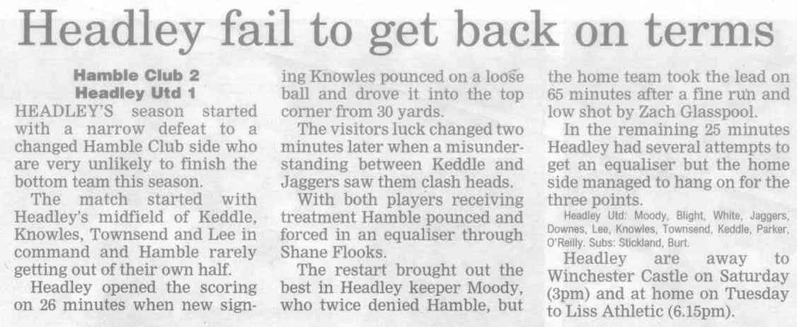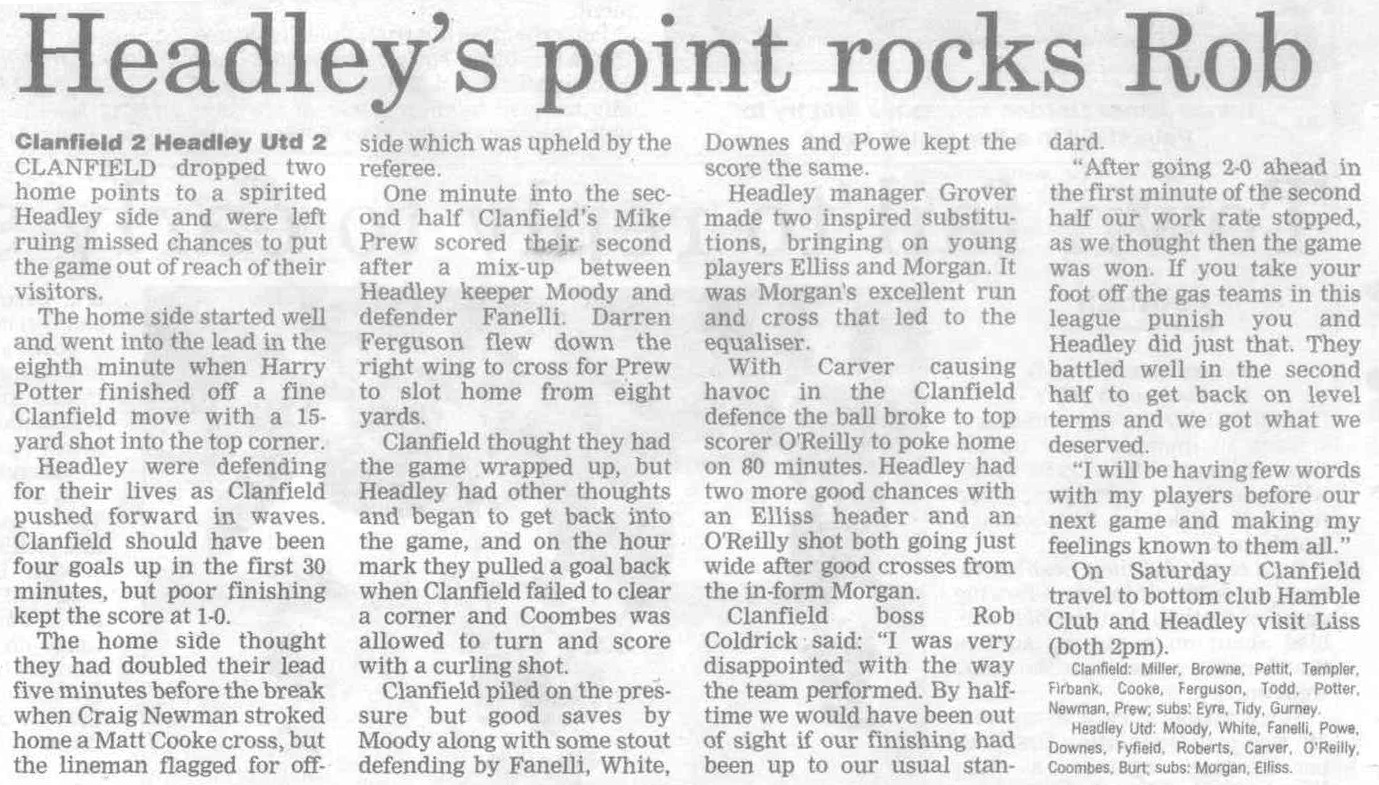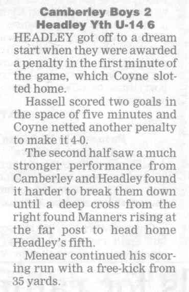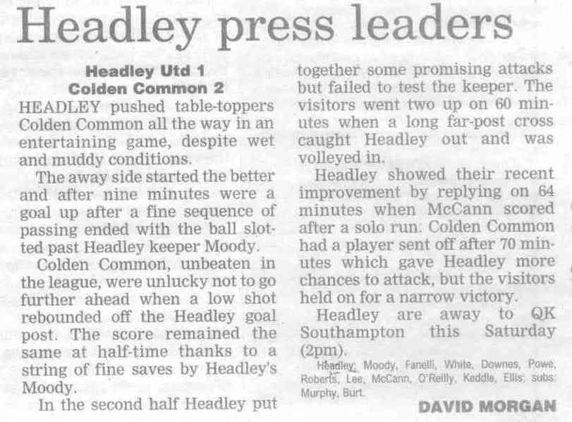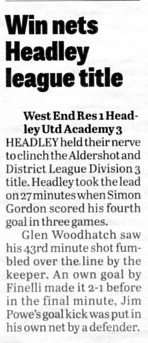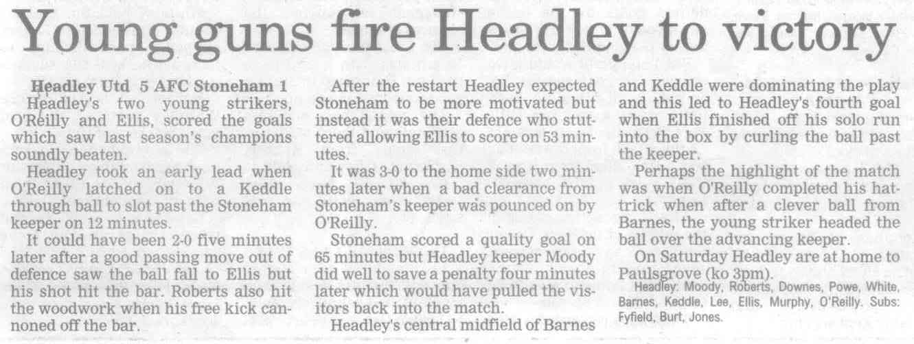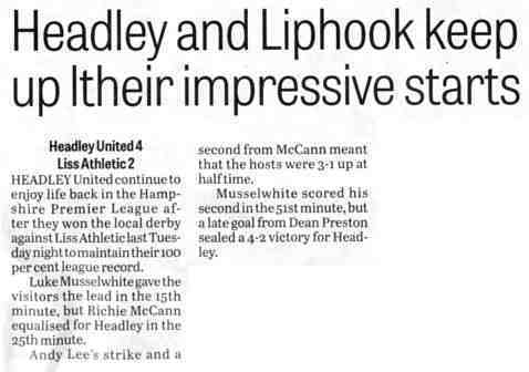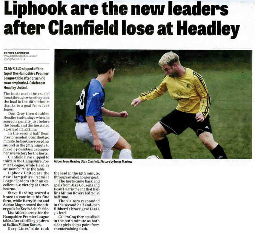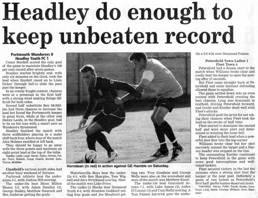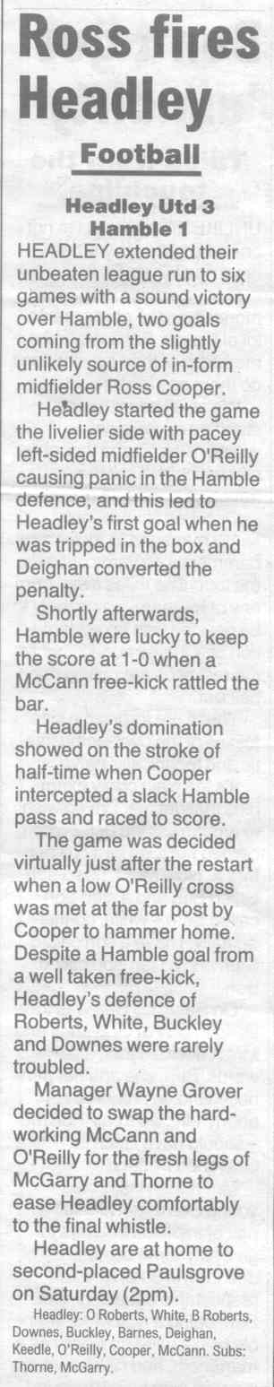 | 2016 | Jan-15-Bordon Herald | 24 | Football: Headley blown away by top side - Headley Utd 1, Hamble Club 4 | |