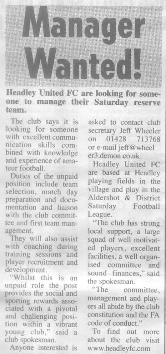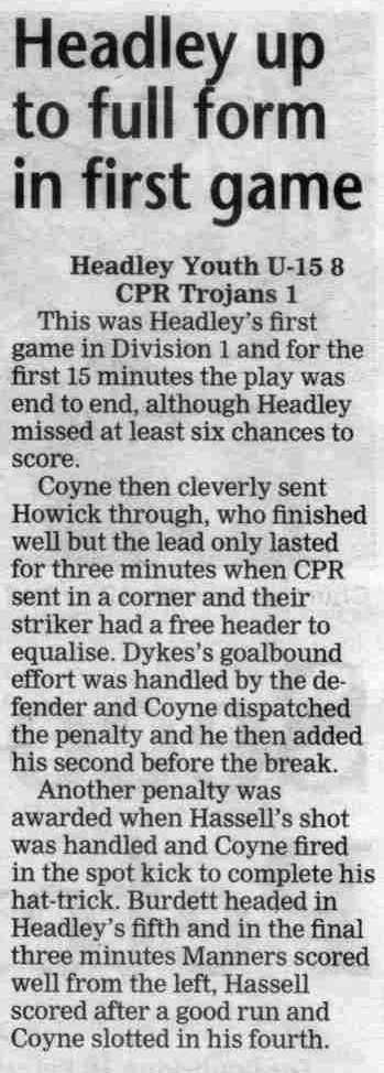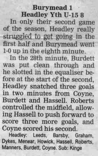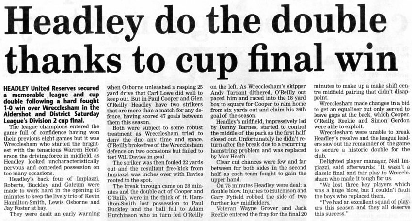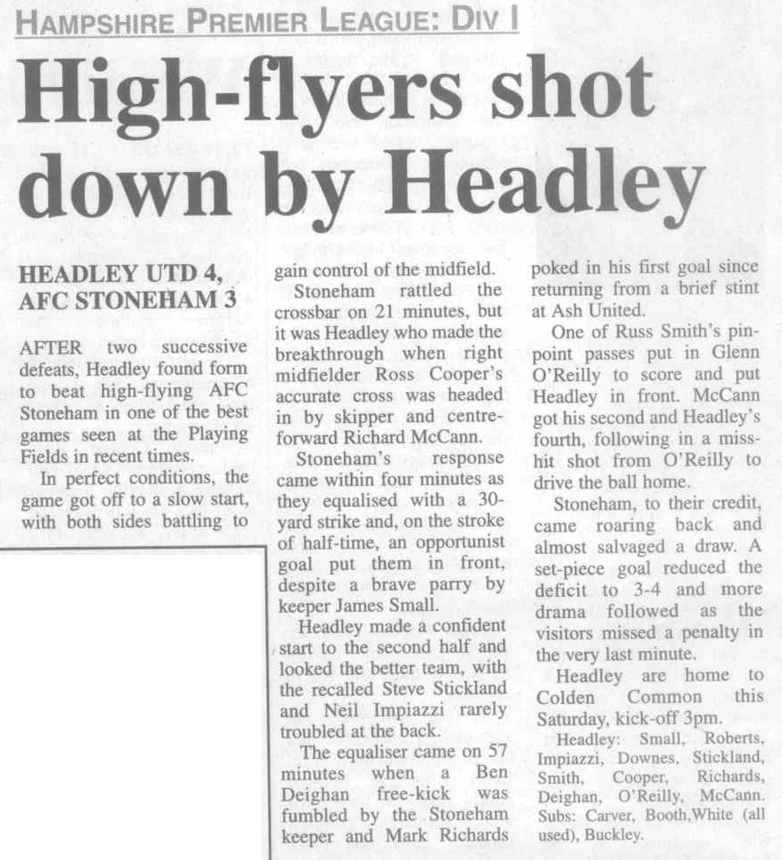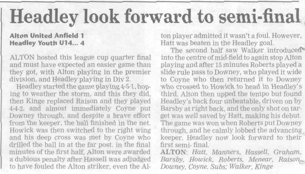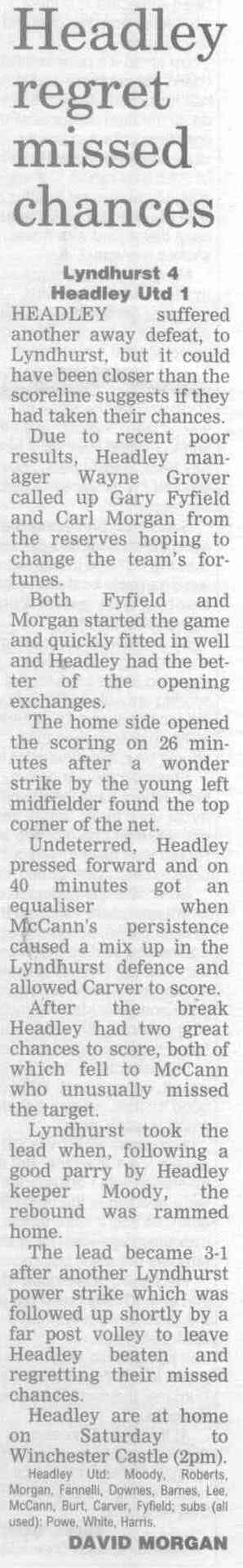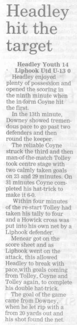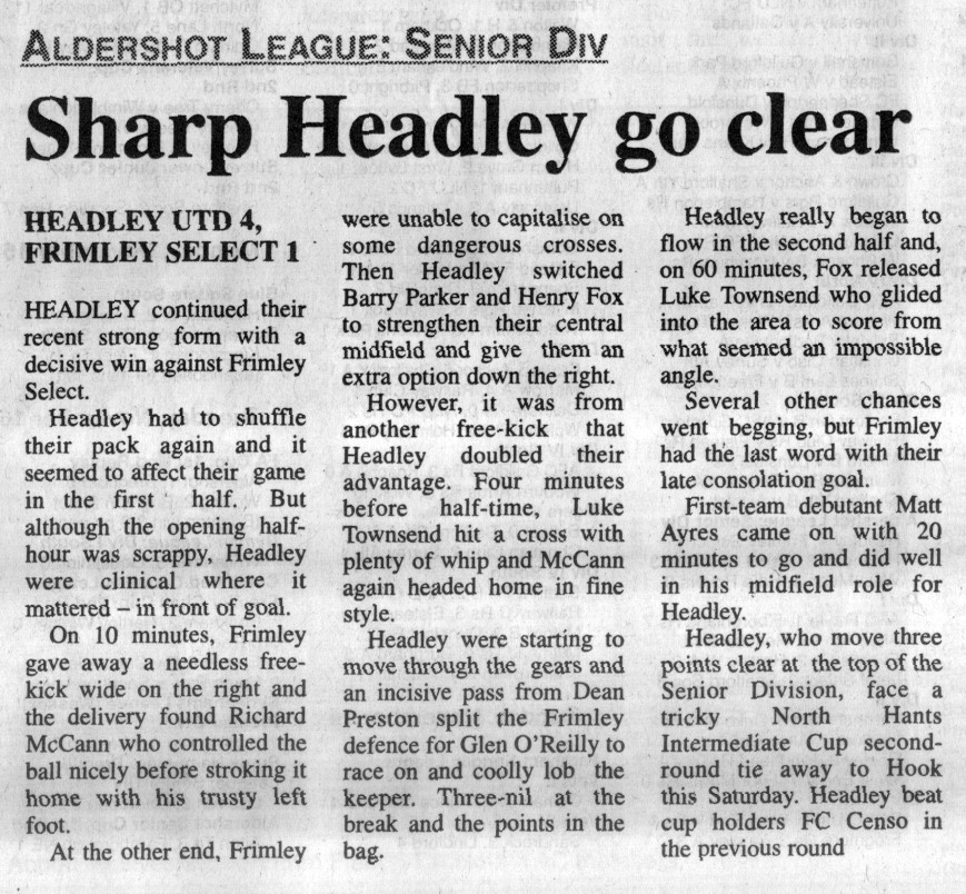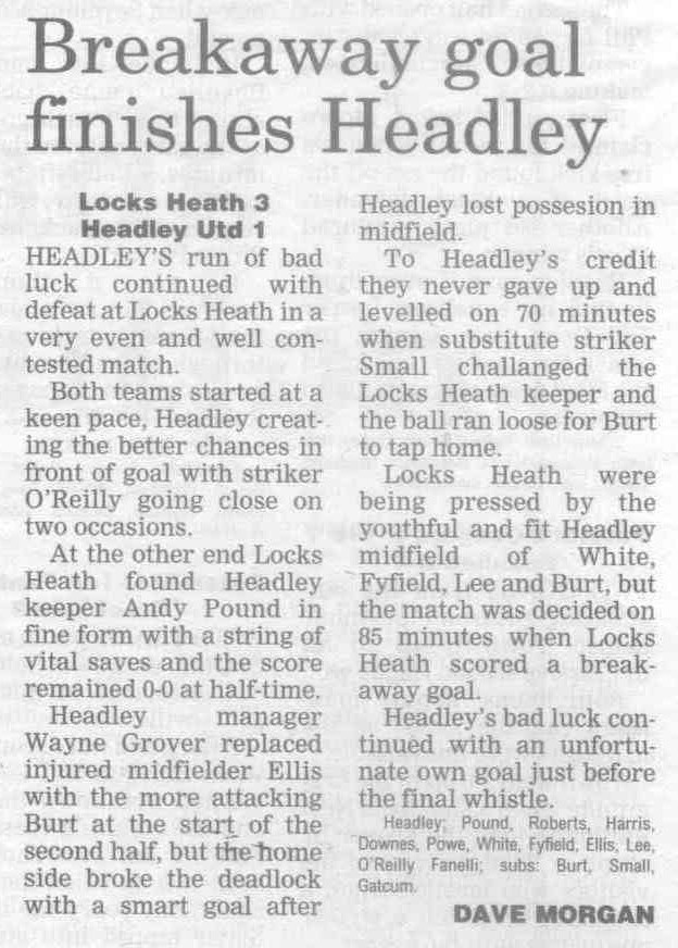 | 2016 | Jan-15-Bordon Herald | 24 | Football: Headley blown away by top side - Headley Utd 1, Hamble Club 4 | |