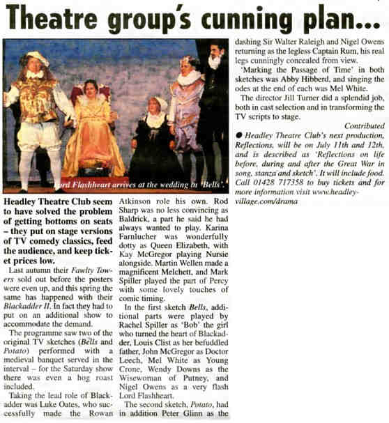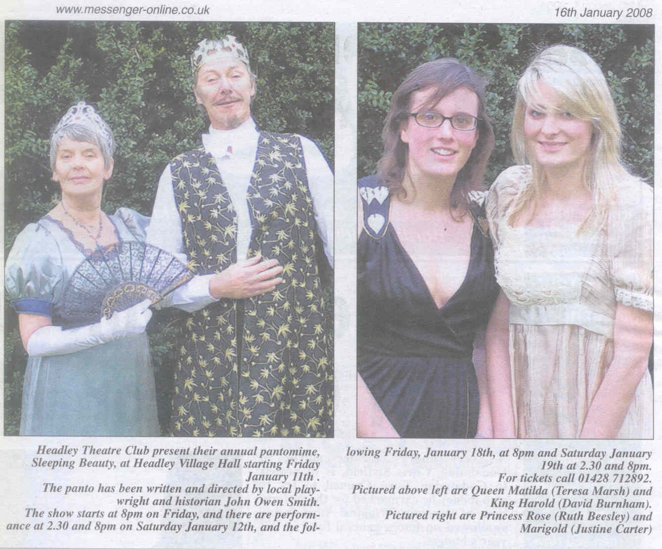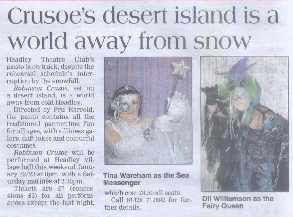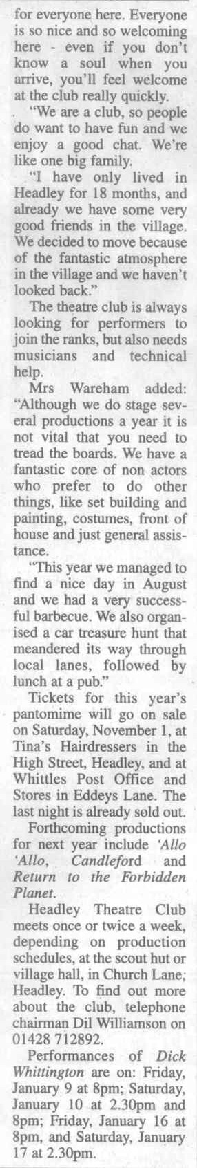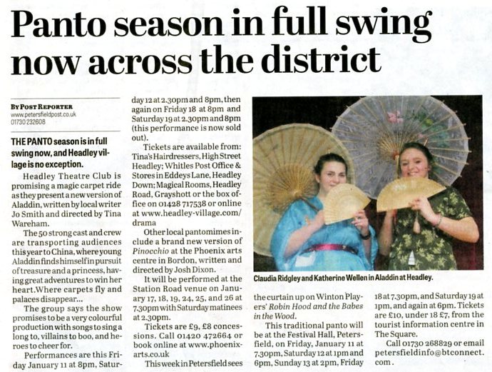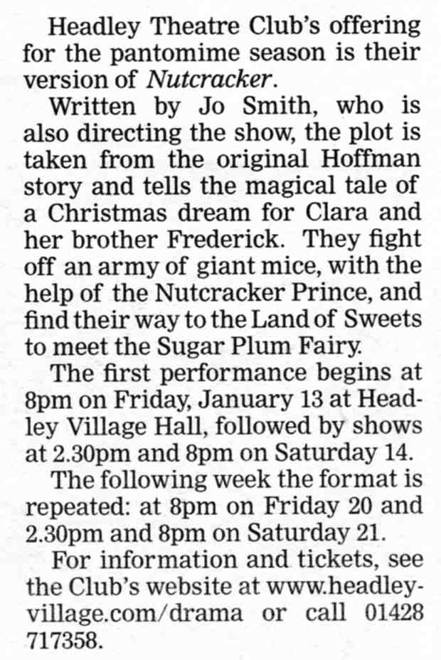 | 2022 | Mar-10-Bordon Herald | 39 | Pantomime will wake up Headley - "Sleeping Beauty" 2022 | P |