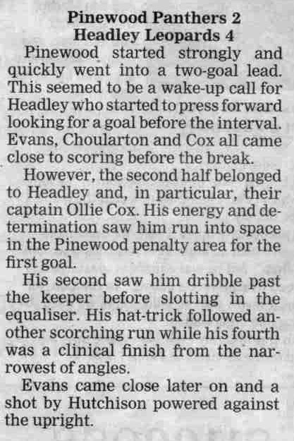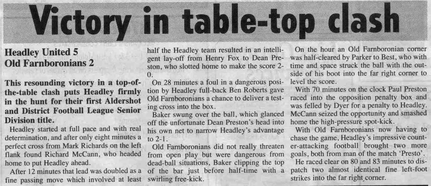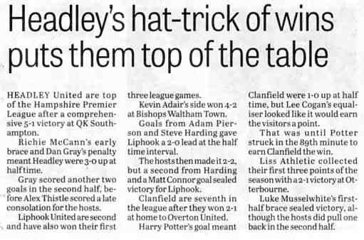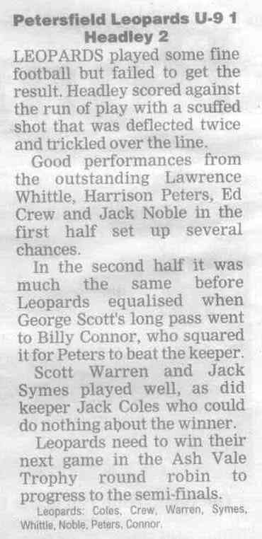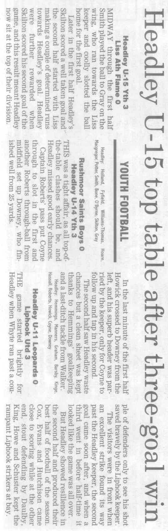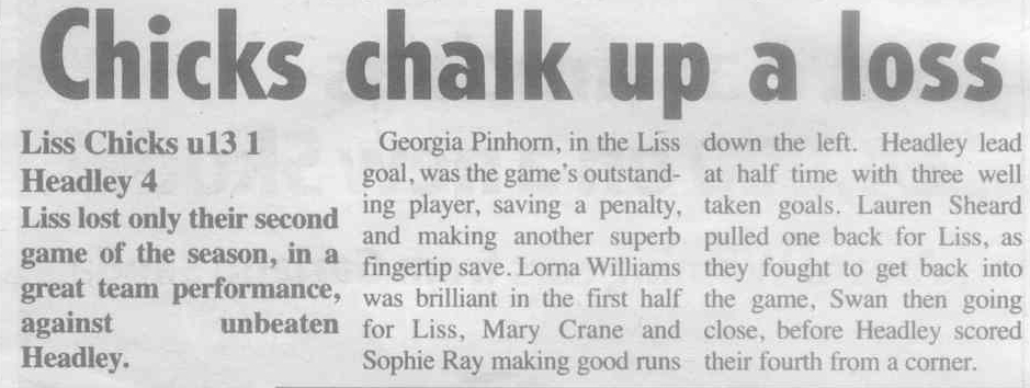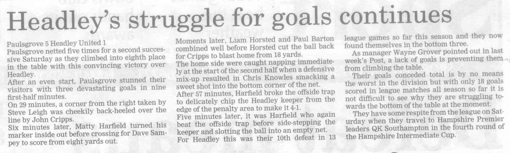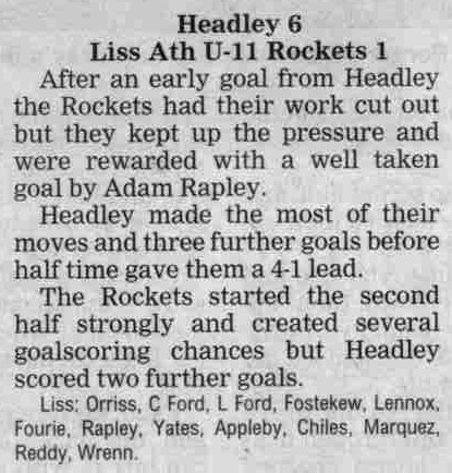 | 2015 | Dec-18-Bordon Herald | 20 | Football: Headley Storm Back - Headley 5, Paulsgrove 4 | |