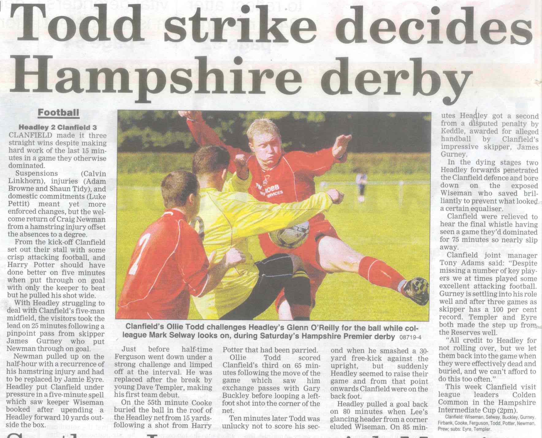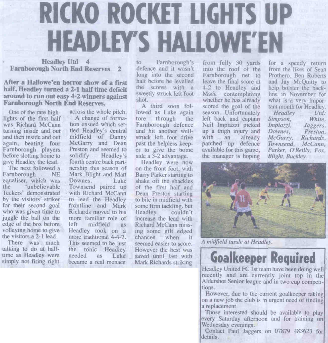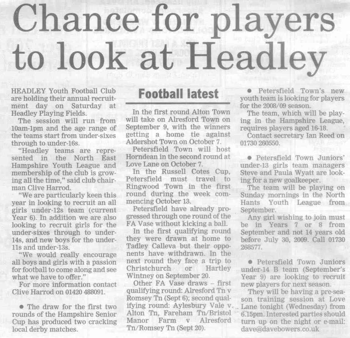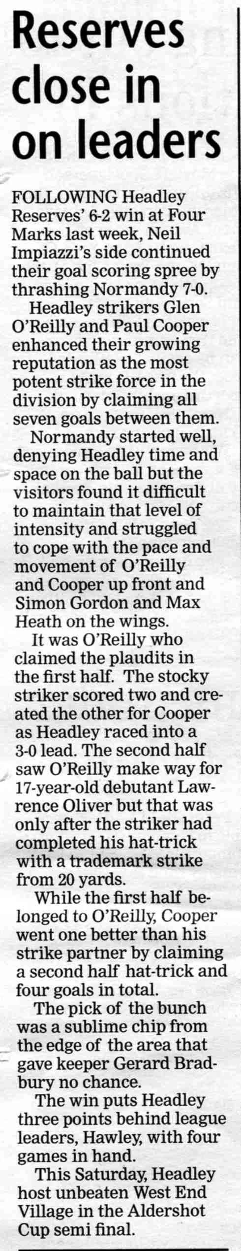 | 2015 | Dec-18-Bordon Herald | 20 | Football: Headley Storm Back - Headley 5, Paulsgrove 4 | |