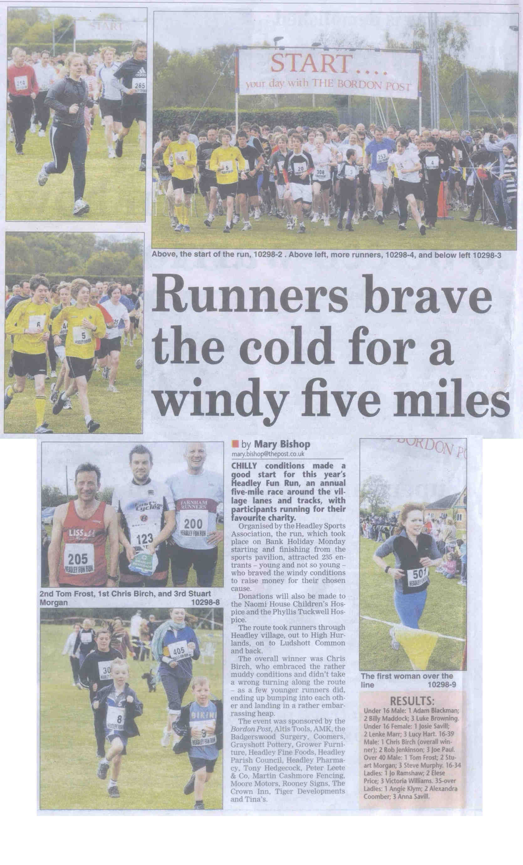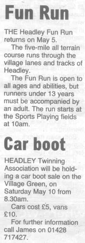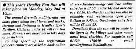 | 2016 | Apr-26-Messenger | 01 | Headley Fun Run - details for registration for 2nd May | |