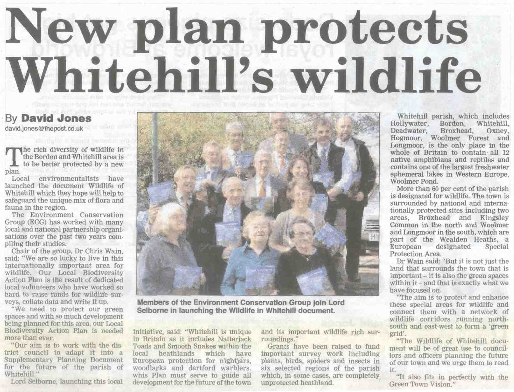 | 2016 | Mar-11-Bordon Herald | 01 | Plan to transform 'wasteland' - Headley Down | P |
