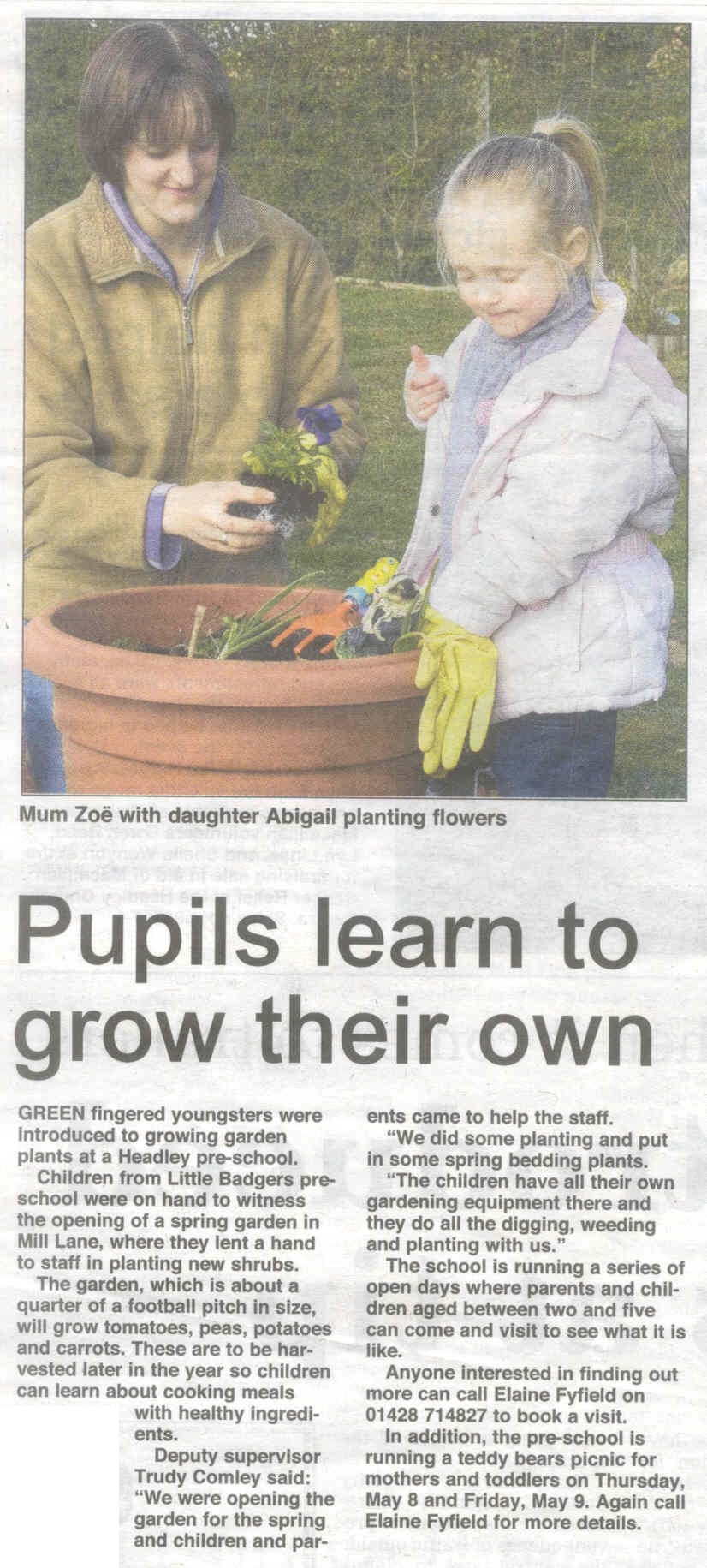 | 2018 | Sep-20-Bordon Herald | 01 | Right at Holme at village fete - Headley Village Fete - Holme School stall | P |