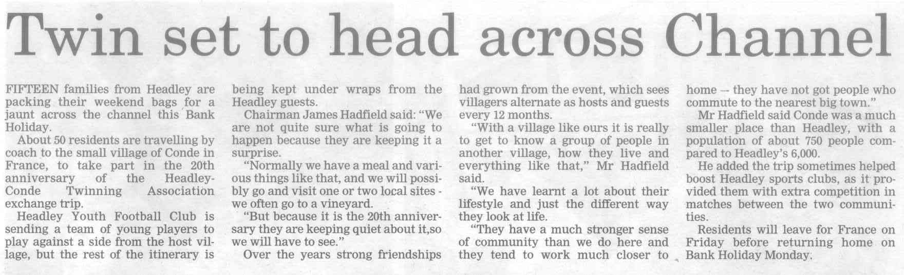 Society's invitation for a trip to France - Headley Twinning Association |