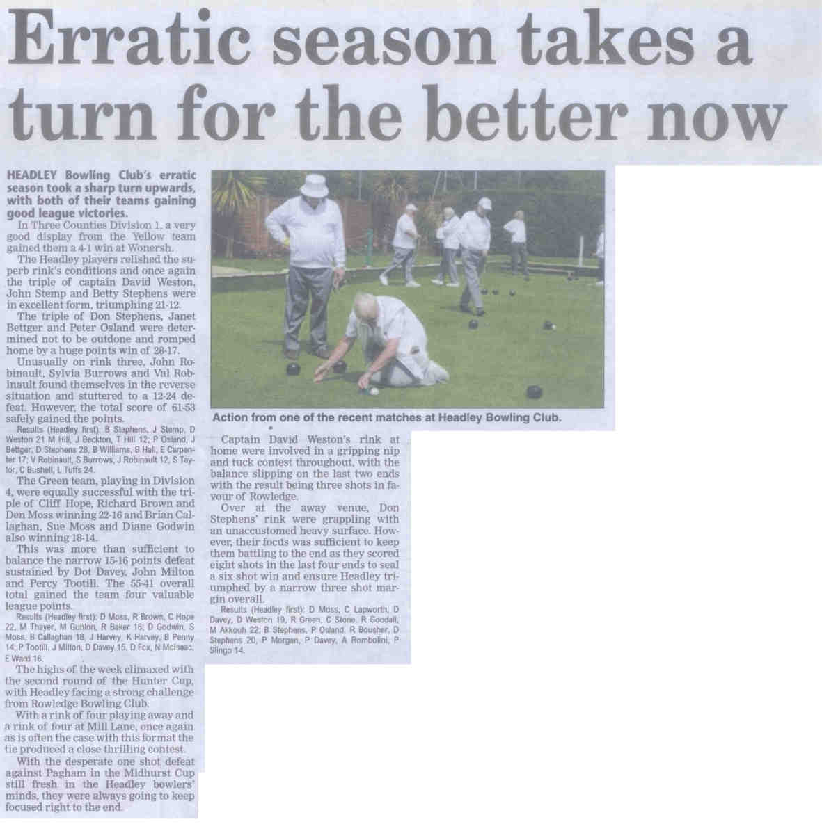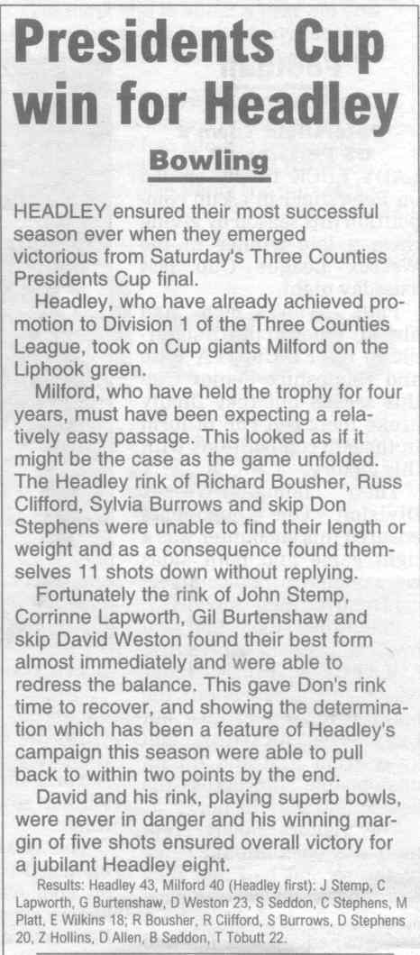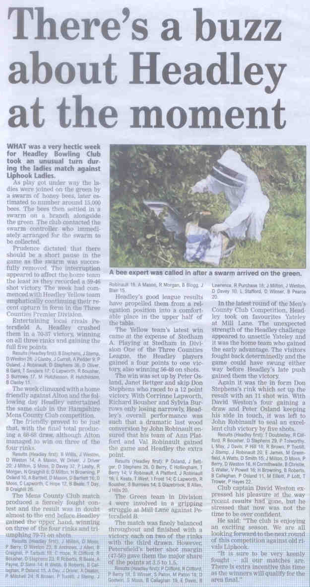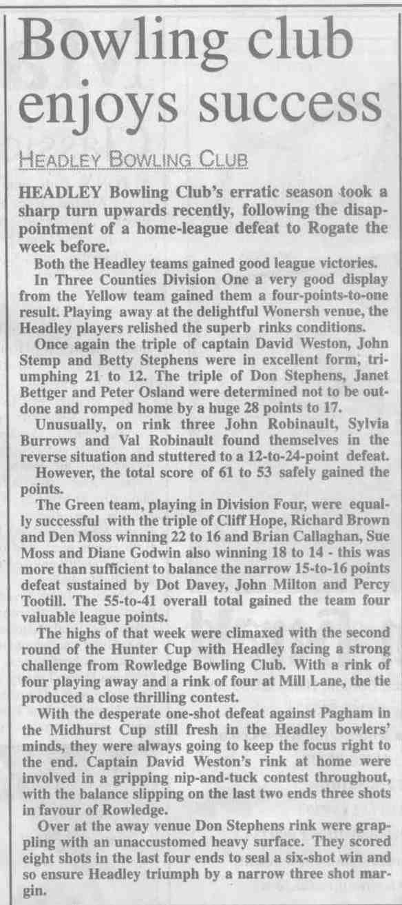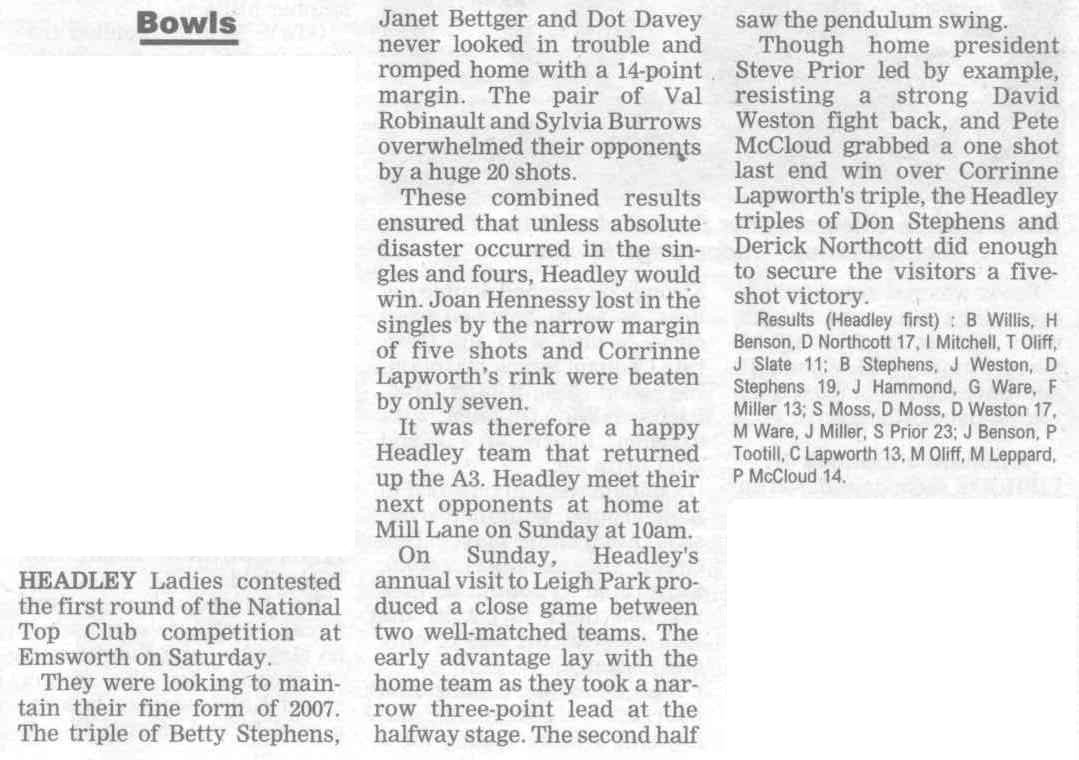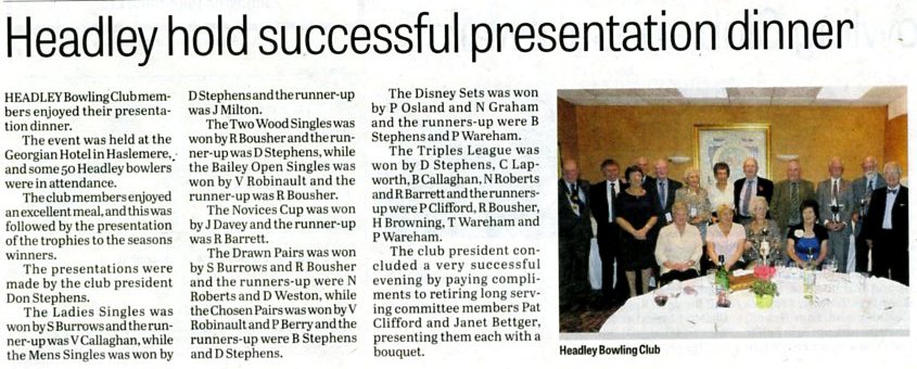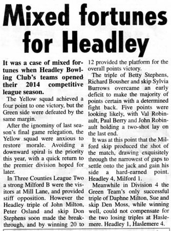 | 2015 | May-05-Messenger | 24 | Bowling: Bowlers set for new season - Headley Bowling Club | P |
