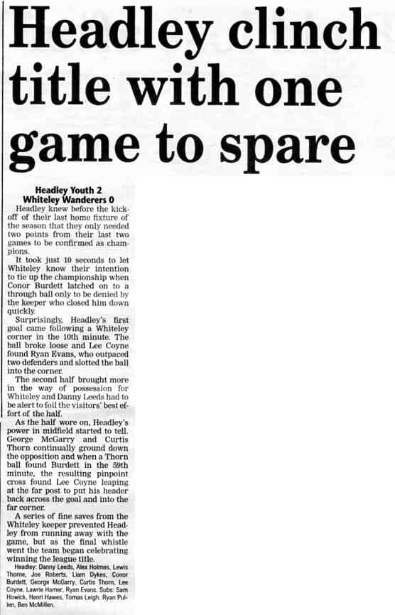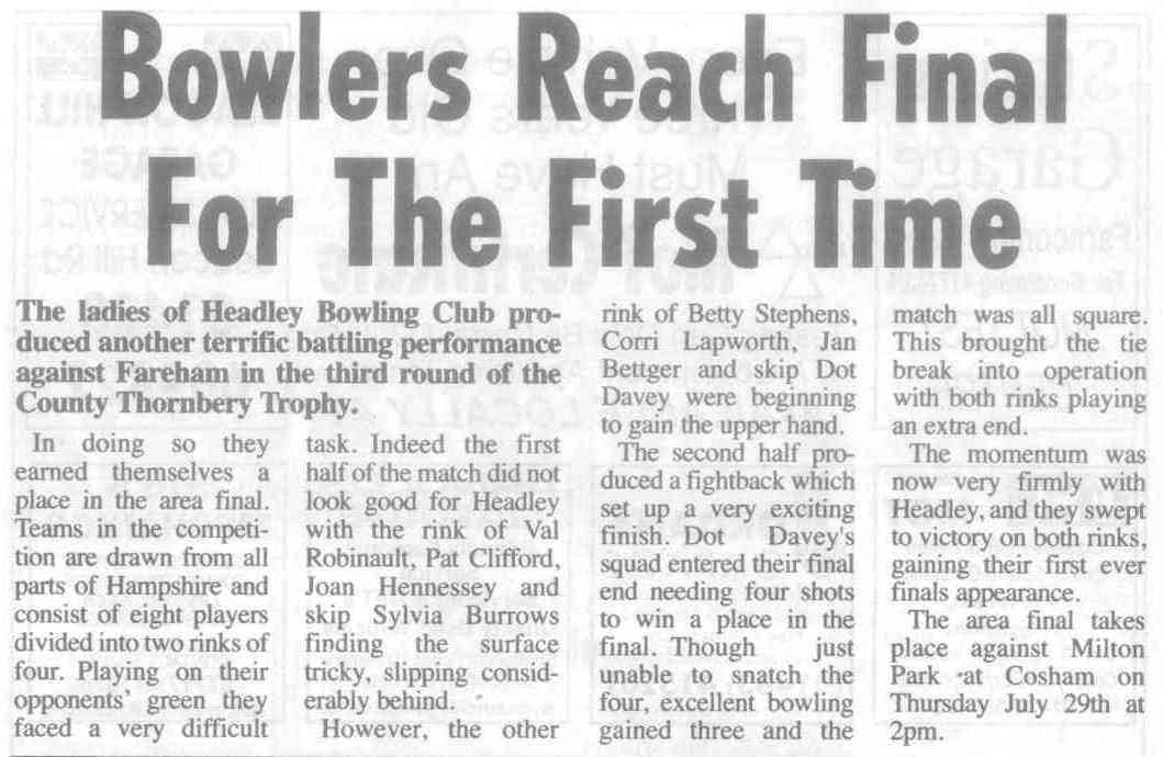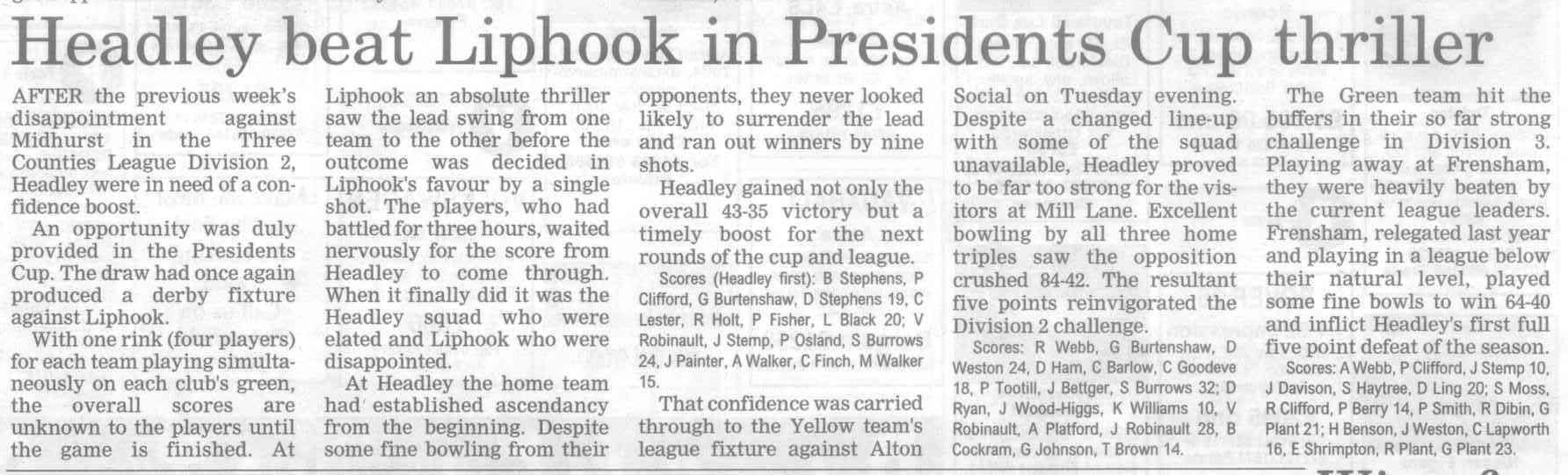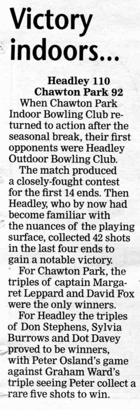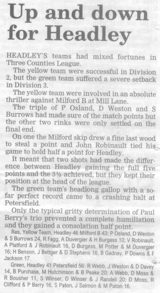 | 2015 | May-05-Messenger | 24 | Bowling: Bowlers set for new season - Headley Bowling Club | P |