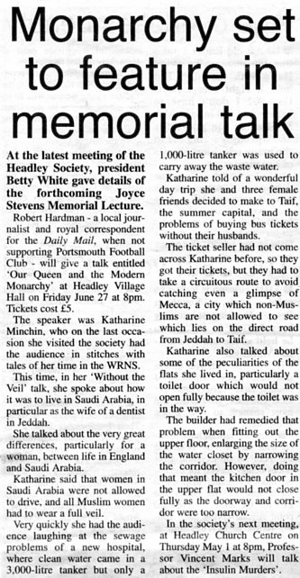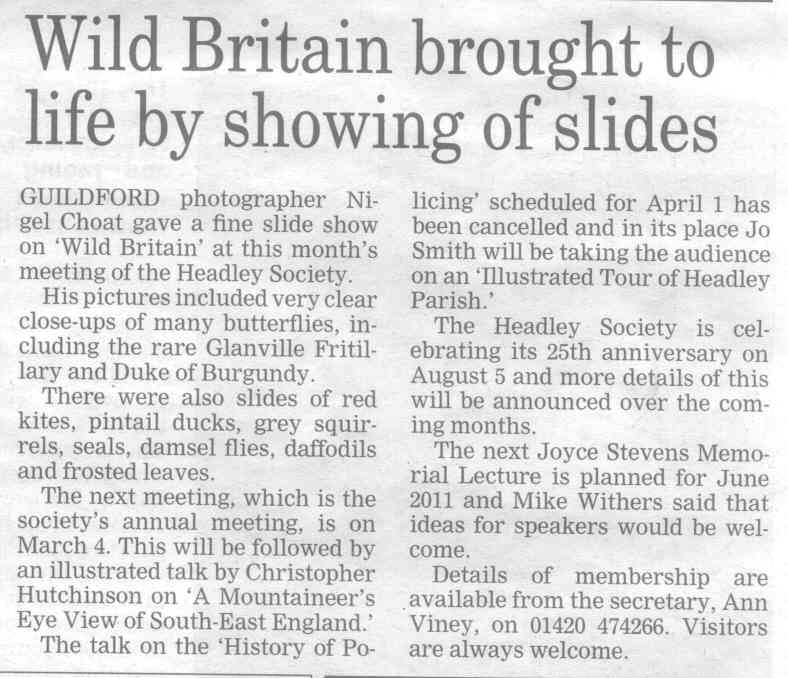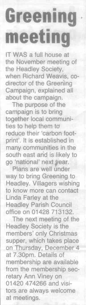 Neighbours learn more (Headley Society: talk about Grayshott) | |