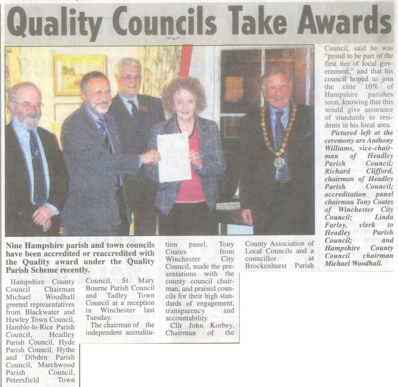 | 2015 | Apr-10-Bordon Herald | 01 | Award for parish clerk - Katie Knowles, clerk of Headley Parish Council | P |