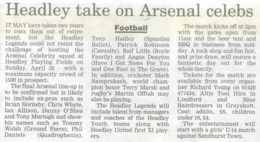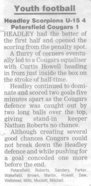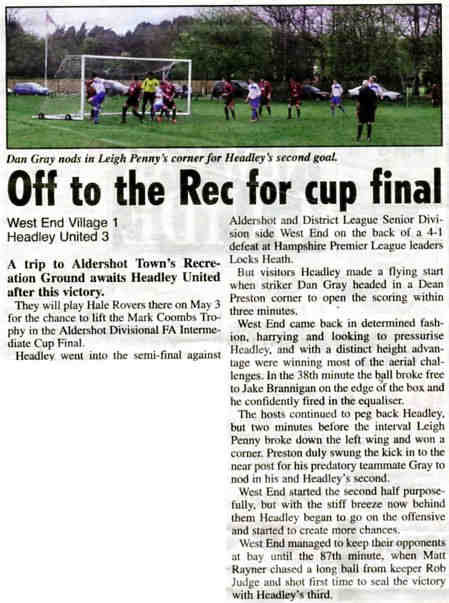 | 2015 | Apr-10-Bordon Herald | 01 | Football: Headley Vets tune up for County Cup clash with French Horn - Headley Veterans 4, Hindhead/Haslemere 3 | |