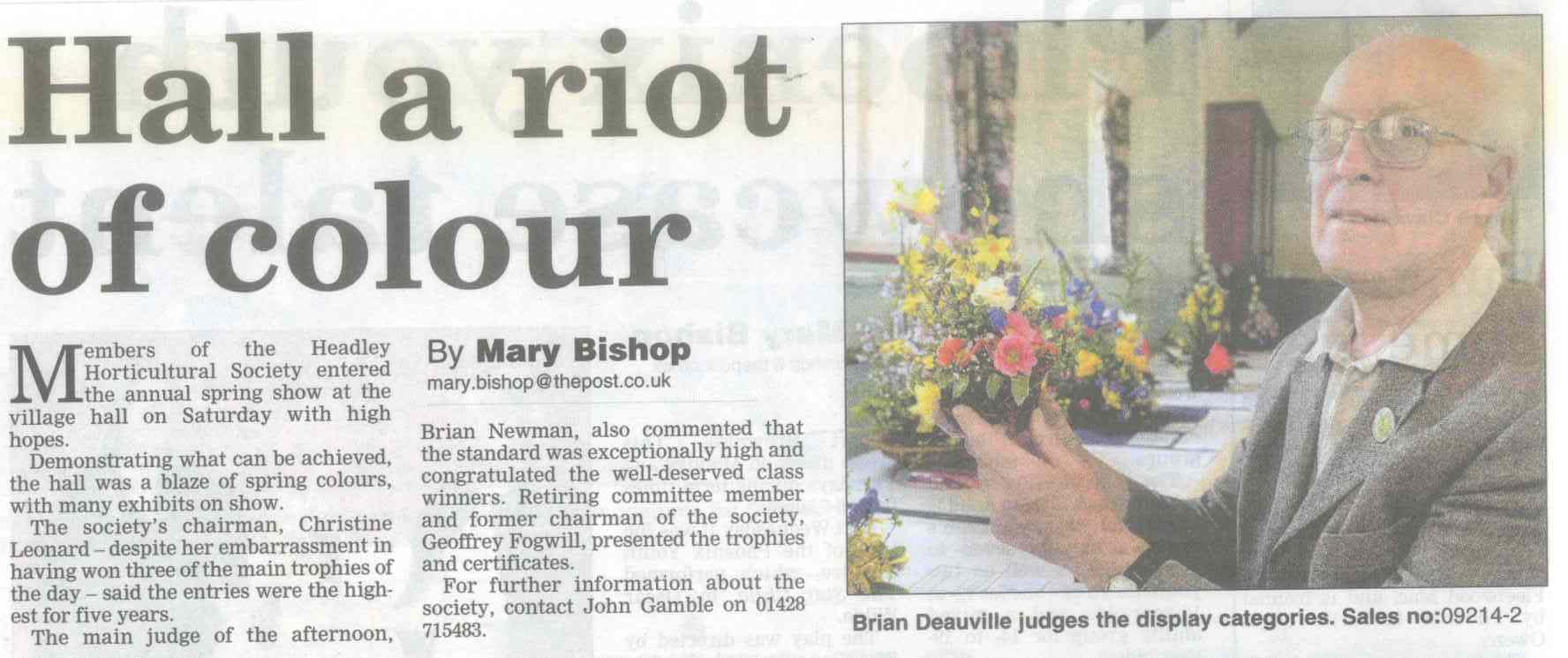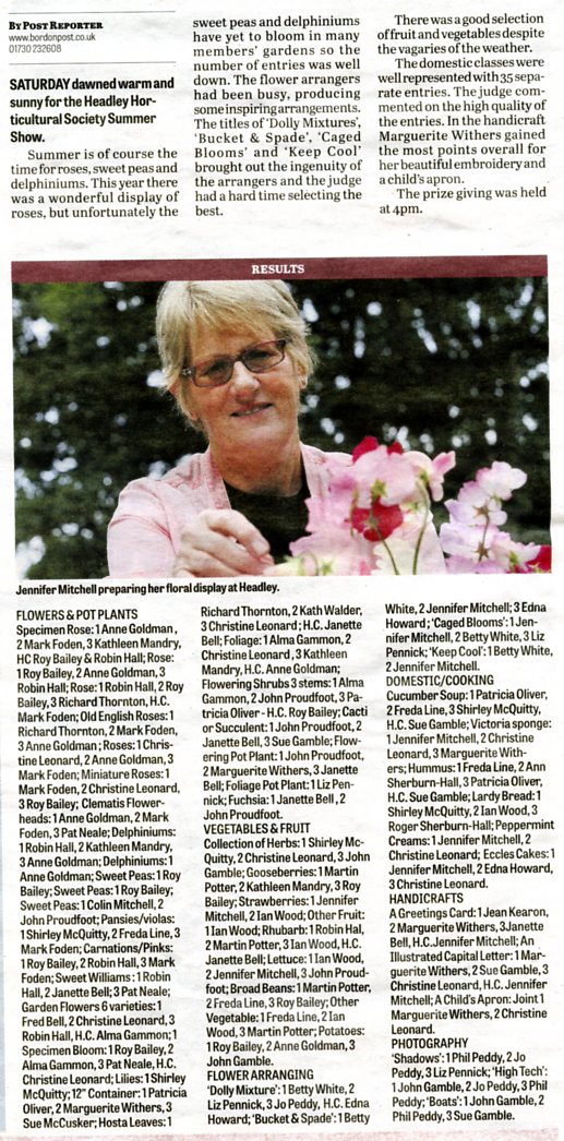 | 2015 | Jul-08-Post | 01 | Hard choice for judges of lofty delphiniums - Headley Horticultural Society summer show | P |